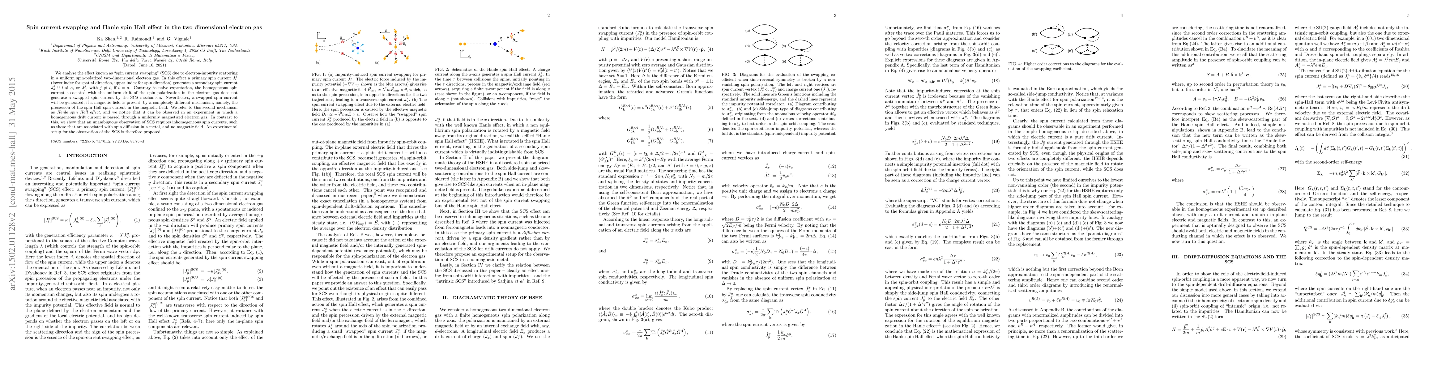We analyze the effect known as "spin current swapping" (SCS) due to electron-impurity scattering in a uniform spin-polarized two-dimensional electron gas. In this effect a primary spin current $J_i^a$ (lower index for spatial direction, upper index for spin direction) generates a secondary spin current $J_a^i$ if $i \neq a$, or $J_j^j$, with $j\ne i$, if $i= a$. Contrary to naive expectation, the homogeneous spin current associated with the uniform drift of the spin polarization in the electron gas does not generate a swapped spin current by the SCS mechanism. Nevertheless, a swapped spin current will be generated, if a magnetic field is present, by a completely different mechanism, namely, the precession of the spin Hall spin current in the magnetic field. We refer to this second mechanism as Hanle spin Hall effect, and we notice that it can be observed in an experiment in which a homogeneous drift current is passed through a uniformly magnetized electron gas. In contrast to this, we show that an unambiguous observation of SCS requires inhomogeneous spin currents, such as those that are associated with spin diffusion in a metal, and no magnetic field. An experimental setup for the observation of the SCS is therefore proposed.
