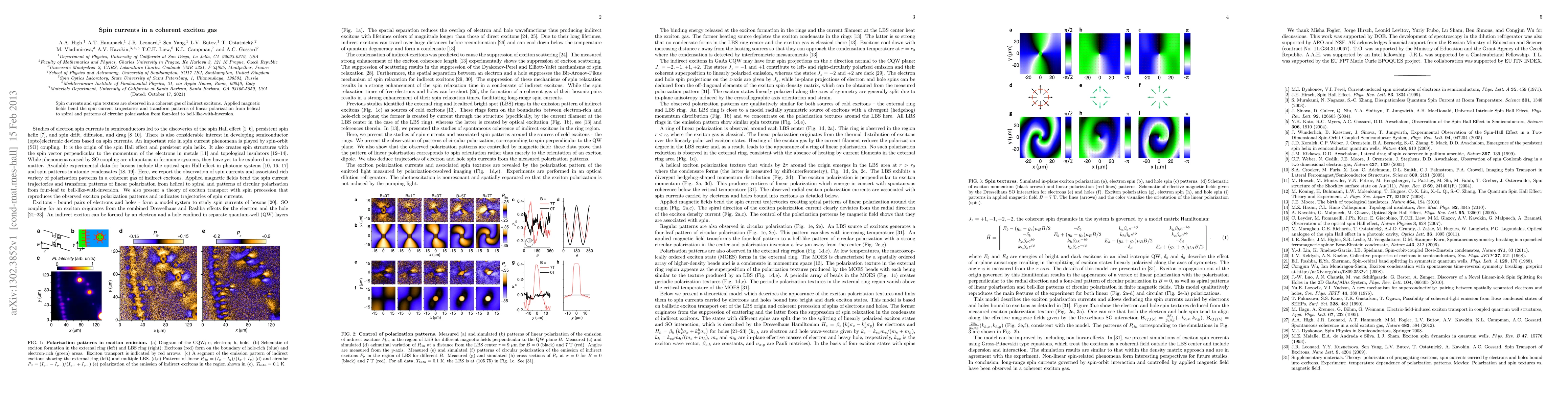 Researchers observe spin currents in a coherent gas of indirect excitons, which change direction when magnetic fields are applied, creating unique patterns of polarization.