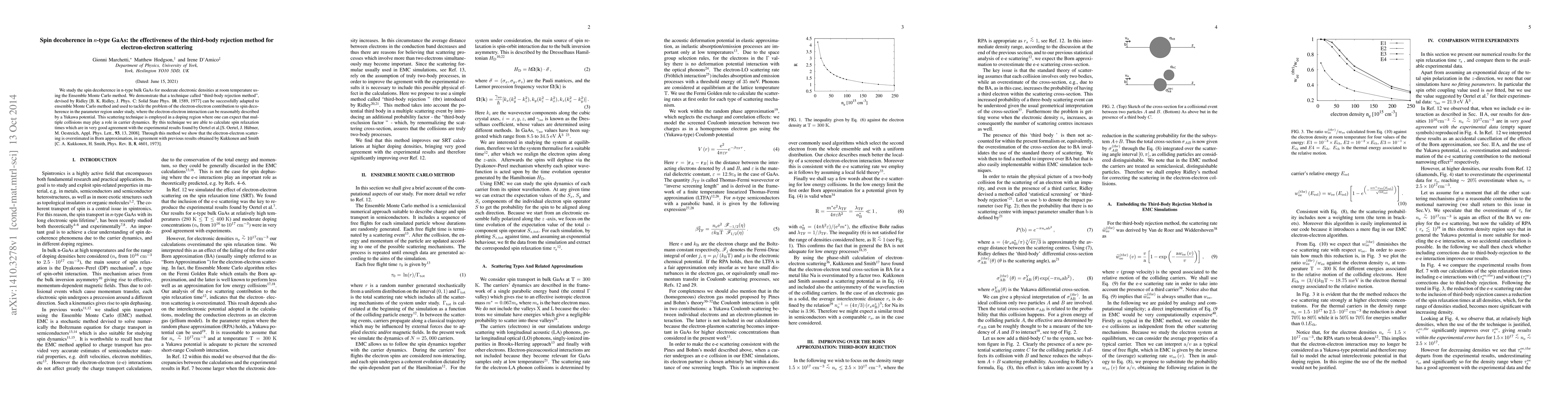 We study the spin decoherence in n-type bulk GaAs for moderate electronic densities at room temperature using Ensemble Monte Carlo method. We demonstrate that the third-body rejection method devised by Ridley can be successfully adapted to Ensemble Monte Carlo algorithm, and used to tackle the problem of the electron-electron contribution to spin decoherence.