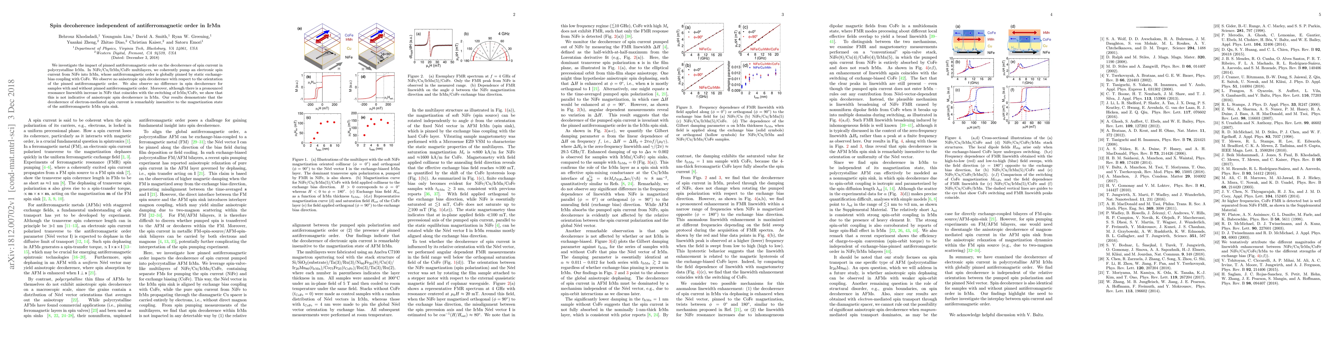 This study reveals that spin decoherence in polycrystalline IrMn is unaffected by pinned antiferromagnetic order, as demonstrated by consistent decoherence rates regardless of the orientation of the antiferromagnetic order in IrMn/CoFe multilayers. The findings suggest that electron-mediated spin current decoherence is independent of the magnetization state of the antiferromagnetic IrMn.