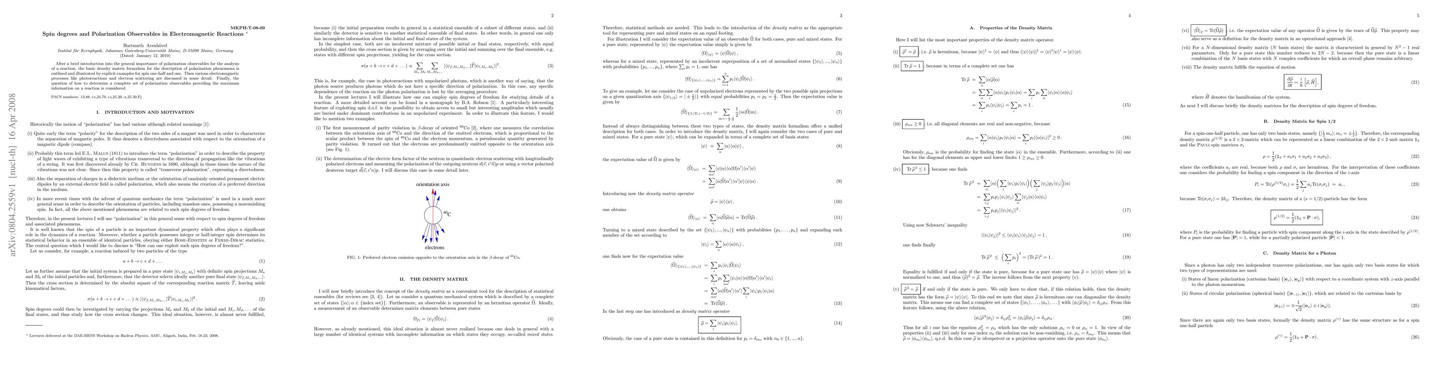 This paper explores the significance of polarization observables in electromagnetic reactions, detailing the density matrix formalism for spin phenomena and analyzing various processes like photoreactions and electron scattering. It concludes by addressing how to establish a complete set of polarization observables for maximal reaction information.