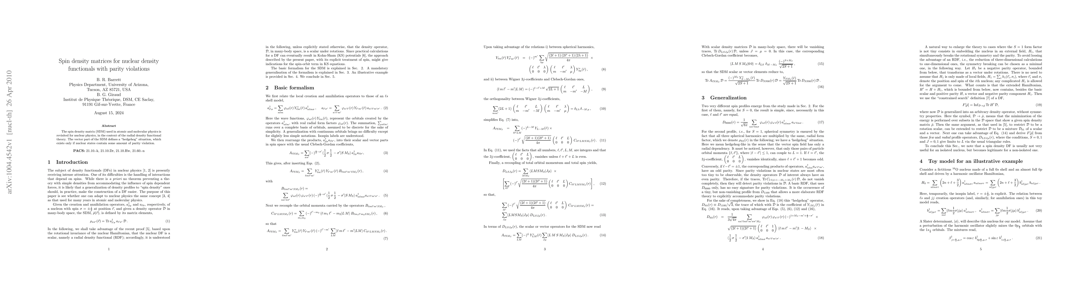 The spin density matrix (SDM) used in atomic and molecular physics is revisited for nuclear physics, in the context of the radial density functional theory. The vector part of the SDM defines a "hedgehog" situation, which exists only if nuclear states contain some amount of parity violation.