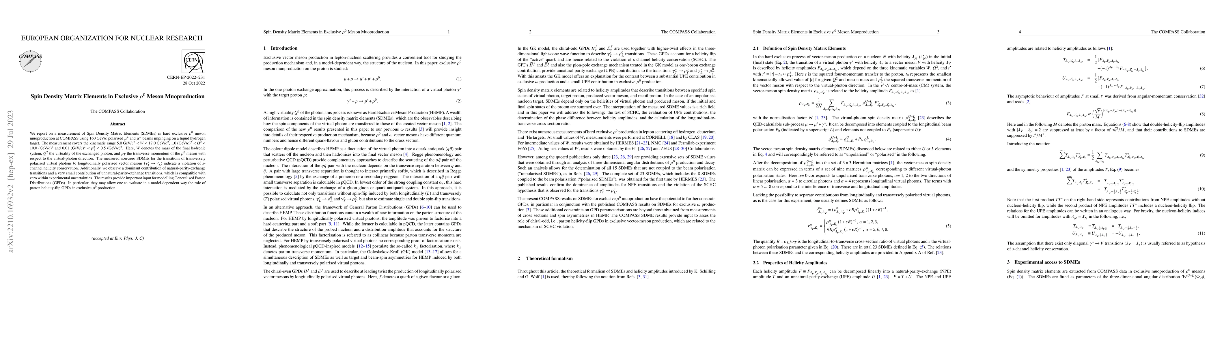 This paper reports on the measurement of Spin Density Matrix Elements (SDMEs) in exclusive $\rho ^0$ meson muoproduction at COMPASS, revealing a violation of $s$-channel helicity conservation. The findings indicate a dominant natural-parity-exchange contribution and negligible unnatural-parity-exchange contribution, providing crucial data for modeling Generalised Parton Distributions (GPDs).