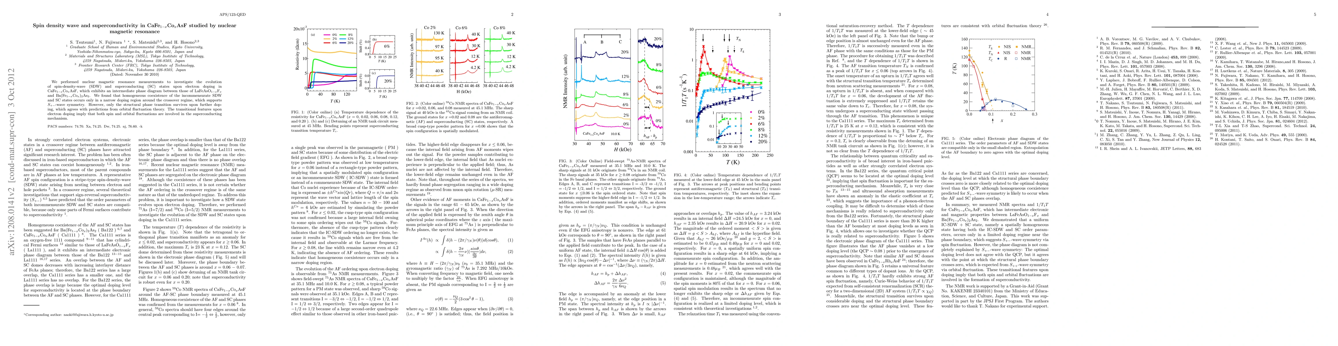 Summary: Nuclear magnetic resonance (NMR) measurements reveal that CaFe_{1-x}Co_{x}AsF exhibits a narrow region where incommensurate spin-density-wave (SDW) and superconducting (SC) states coexist, supporting S_{+-}-wave symmetry. Beyond this region, only the structural phase transition persists, indicating a role for both spin and orbital fluctuations in superconductivity.