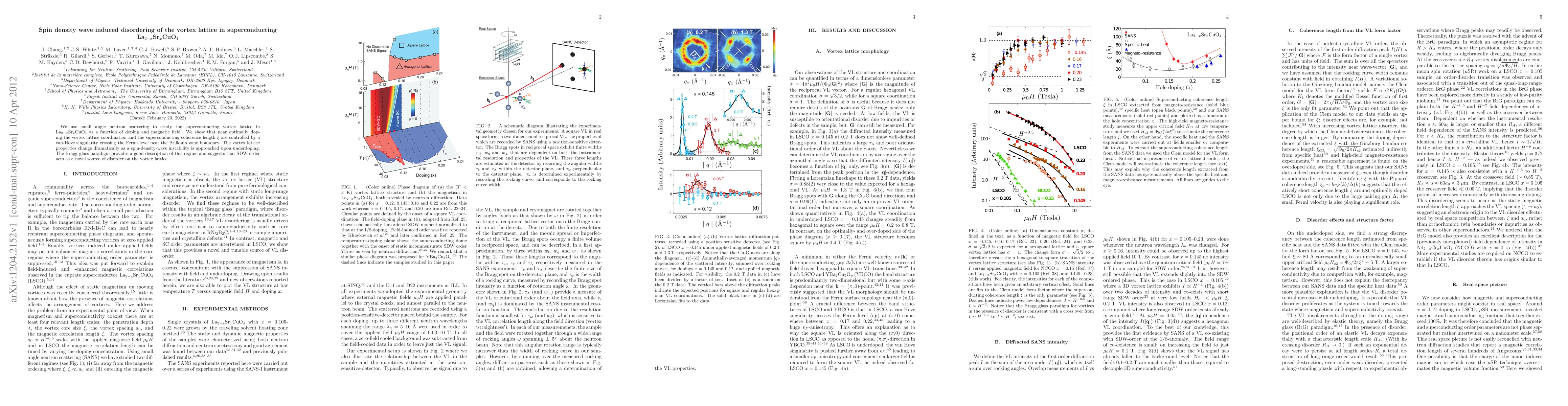 This study uses small angle neutron scattering to investigate the vortex lattice in superconducting La$_{2-x}$Sr$_x$CuO$_4$, revealing that near optimal doping, vortex lattice coordination and coherence length are influenced by a van-Hove singularity. As underdoping approaches a spin-density-wave instability, the vortex lattice properties change significantly, suggesting that SDW order introduces disorder via the Bragg glass paradigm.