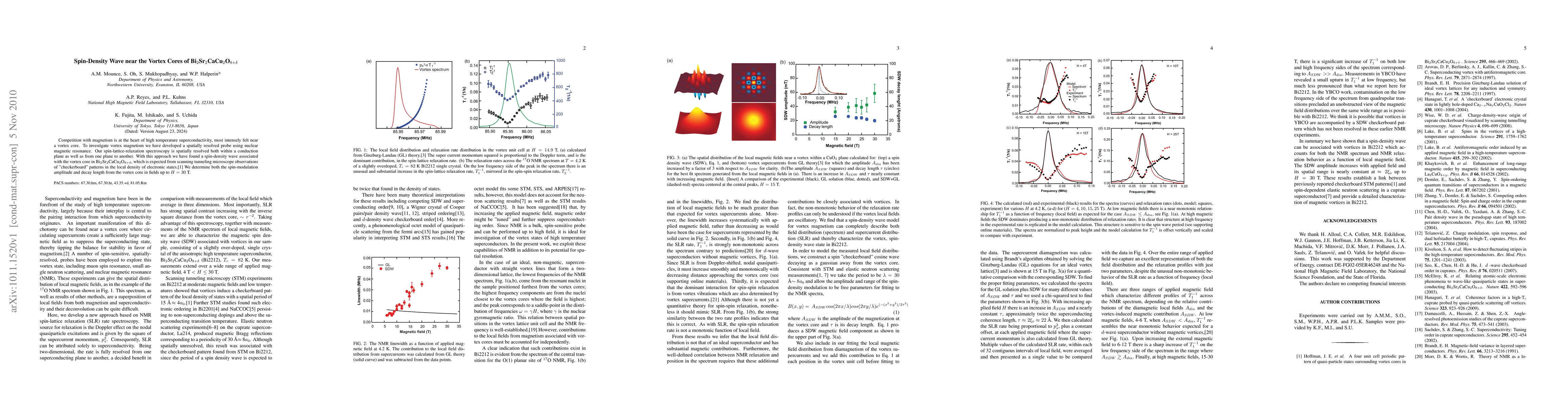 Researchers used nuclear magnetic resonance to study vortex magnetism in a superconducting material, finding a spin-density wave near the vortex core that matches scanning tunneling microscope observations. The study reveals details of the spin-modulation amplitude and decay length from the vortex core up to 30 Tesla fields.