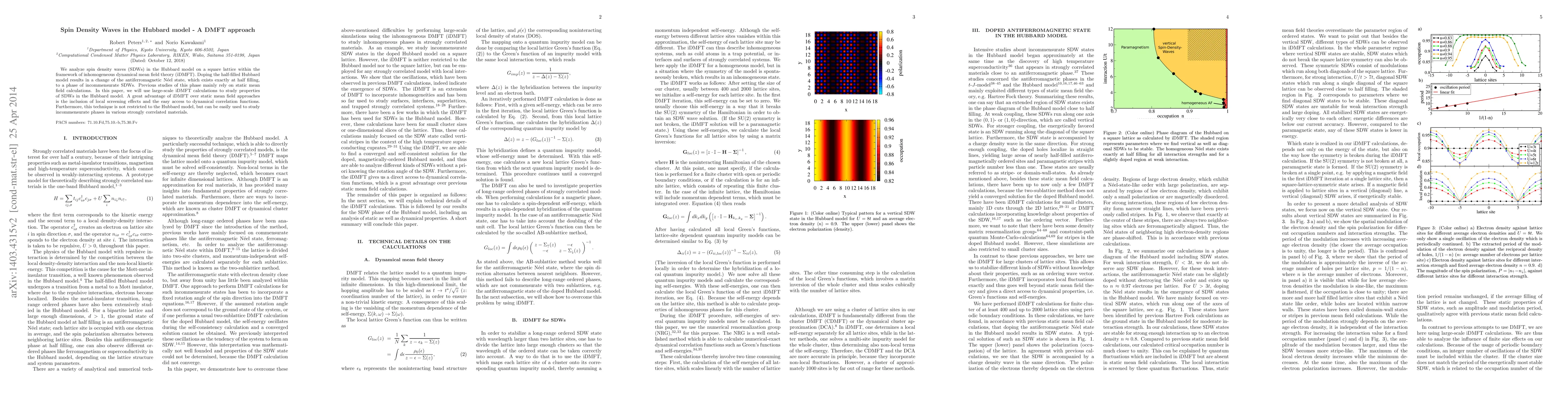 This research uses inhomogeneous dynamical mean field theory (iDMFT) to analyze spin density waves (SDWs) in the Hubbard model on a square lattice, revealing local screening effects and dynamical correlation functions not captured by static mean field calculations. The method can be applied to various strongly correlated materials.