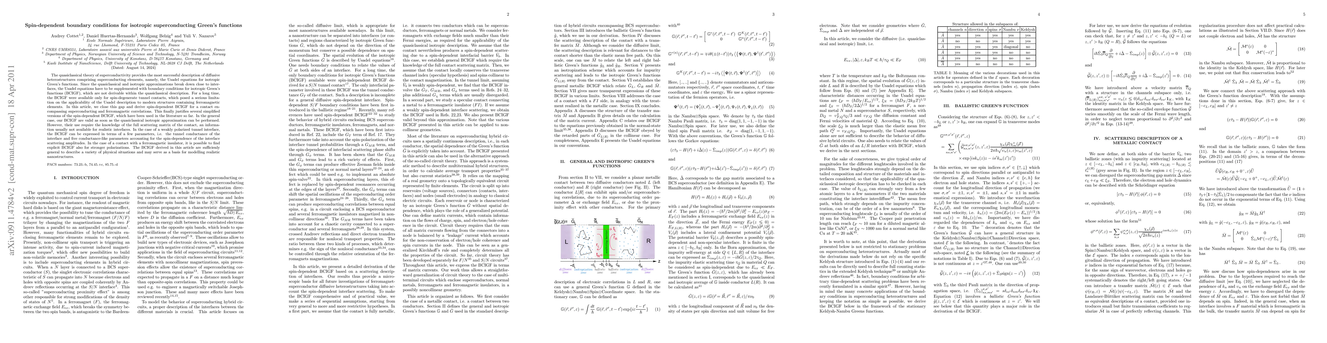 The quasiclassical theory of superconductivity provides the most successful description of diffusive heterostructures comprising superconducting elements, namely, the Usadel equations for isotropic Green's functions. Since the quasiclassical and isotropic approximations break down close to interfaces, the Usadel equations have to be supplemented with boundary conditions for isotropic Green's functions (BCIGF), which are not derivable within the quasiclassical description. For a long time, the BCIGF were available only for spin-degenerate tunnel contacts, which posed a serious limitation on the applicability of the Usadel description to modern structures containing ferromagnetic elements. In this article, we close this gap and derive spin-dependent BCIGF for a contact encompassing superconducting and ferromagnetic correlations. This finally justifies several simplified versions of the spin-dependent BCIGF, which have been used in the literature so far. In the general case, our BCIGF are valid as soon as the quasiclassical isotropic approximation can be performed. However, their use require the knowledge of the full scattering matrix of the contact, an information usually not available for realistic interfaces. In the case of a weakly polarized tunnel interface, the BCIGF can be expressed in terms of a few parameters, i.e. the tunnel conductance of the interface and five conductance-like parameters accounting for the spin-dependence of the interface scattering amplitudes. In the case of a contact with a ferromagnetic insulator, it is possible to find explicit BCIGF also for stronger polarizations. The BCIGF derived in this article are sufficienly general to describe a variety of physical situations and may serve as a basis for modelling realistic nanostructures.