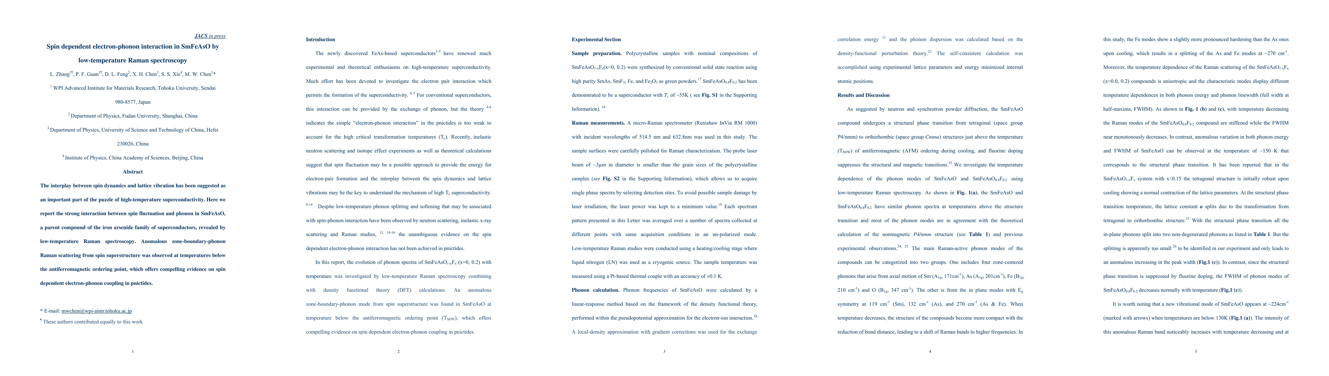This study reveals a strong interaction between spin fluctuations and phonons in SmFeAsO using low-temperature Raman spectroscopy, providing evidence of spin dependent electron-phonon coupling in iron arsenide superconductors. The observed anomalous Raman scattering at temperatures below the antiferromagnetic ordering point supports the role of spin dynamics in high-temperature superconductivity.