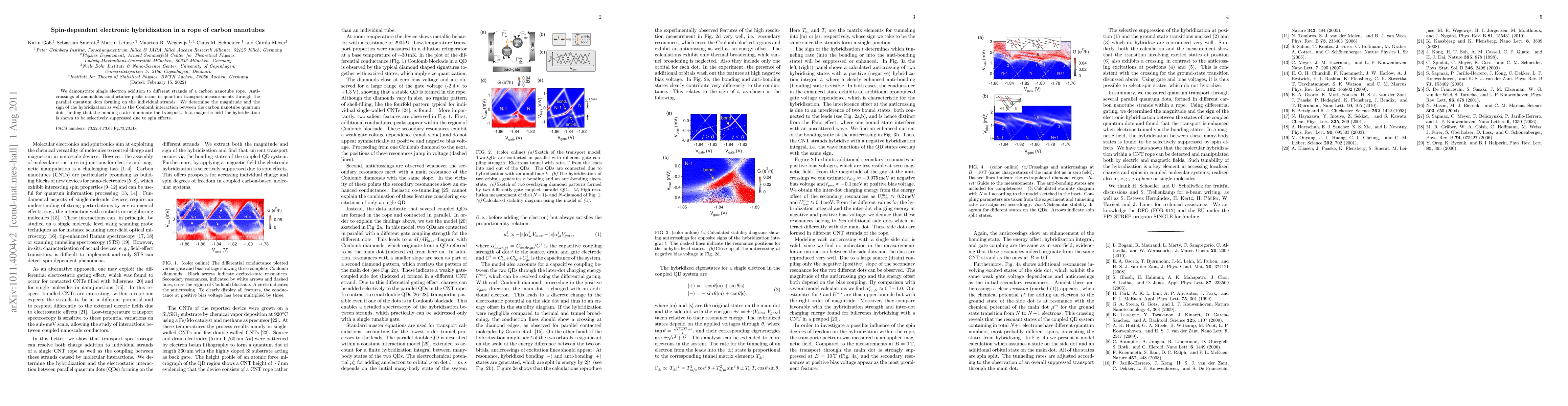 The research presents evidence of single electron addition to separate strands in a carbon nanotube rope. Quantum transport measurements reveal anticrossings of unique conductance peaks, indicating hybridization between parallel quantum dots on individual strands. The study determines hybridization strength, sign, and Coulomb interaction, finding bonding states primarily influence transport. In magnetic fields, spin effects selectively suppress hybridization.