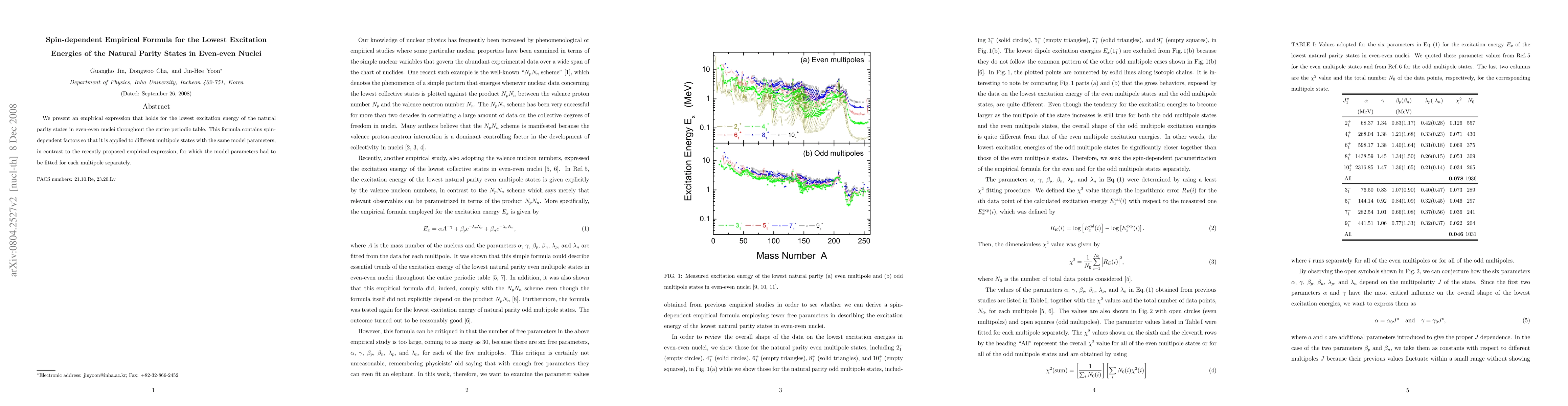 This paper introduces a spin-dependent empirical formula for predicting the lowest excitation energies of natural parity states in even-even nuclei across the periodic table, using a single set of model parameters for all multipole states, unlike previous methods requiring separate fittings.