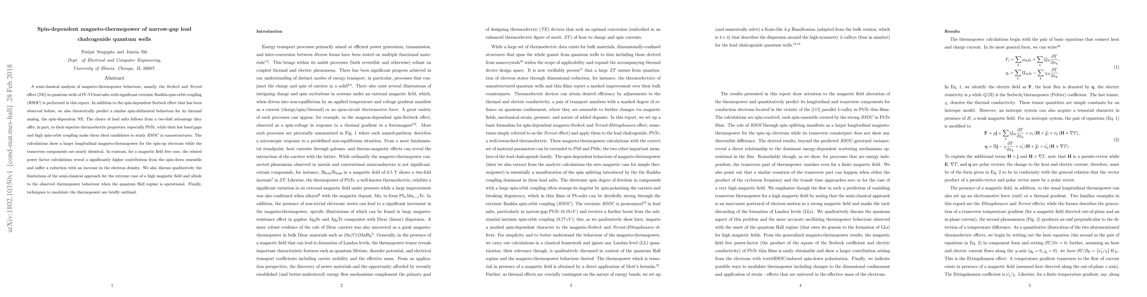A semi-classical analysis of magneto-thermopower behaviour, namely, the \textit{Seebeck} and \textit{Nernst} effect (NE) in quantum wells of IV-VI lead salts with significant extrinsic Rashba spin-orbit coupling (RSOC) is performed in this report. In addition to the spin-dependent Seebeck effect that has been observed before, we also theoretically predict a similar spin-delineated behaviour for its thermal analog, the spin-dependent NE. The choice of lead salts follows from a two-fold advantage they offer, in part, to their superior thermoelectric properties, especially PbTe, while their low band gaps and high spin-orbit coupling make them ideal candidates to study \textit{RSOC} in nanostructures. The calculations show a larger longitudinal magneto-thermopower for the spin-up electrons while the transverse components are nearly identical. In contrast, for a magnetic field free case, the related power factor calculations reveal a significantly higher contribution from the spin-down ensemble and suffer a reduction with an increase in the electron density. We also discuss qualitatively the limitations of the semi-classical approach for the extreme case of a high magnetic field and allude to the observed thermopower behaviour when the quantum Hall regime is operational. Finally, techniques to modulate the thermopower are briefly outlined.