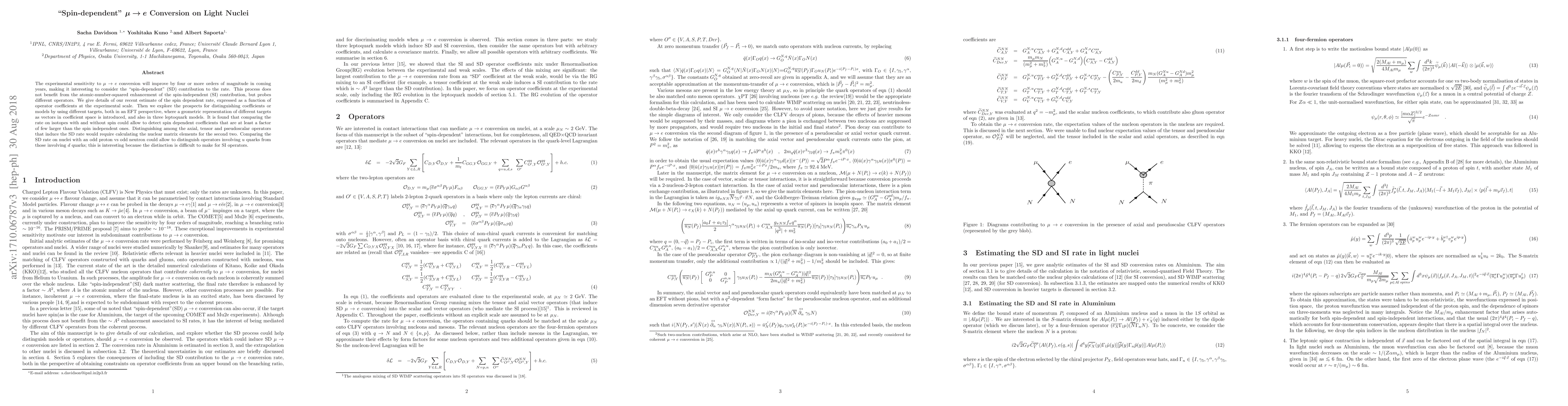 This paper explores the "spin-dependent" contribution to the muon-to-electron conversion rate on light nuclei, which does not benefit from the same enhancement as the spin-independent contribution. It proposes a method to distinguish between different operator coefficients by comparing conversion rates on various nuclear targets, highlighting the potential to detect spin-dependent coefficients larger than spin-independent ones.