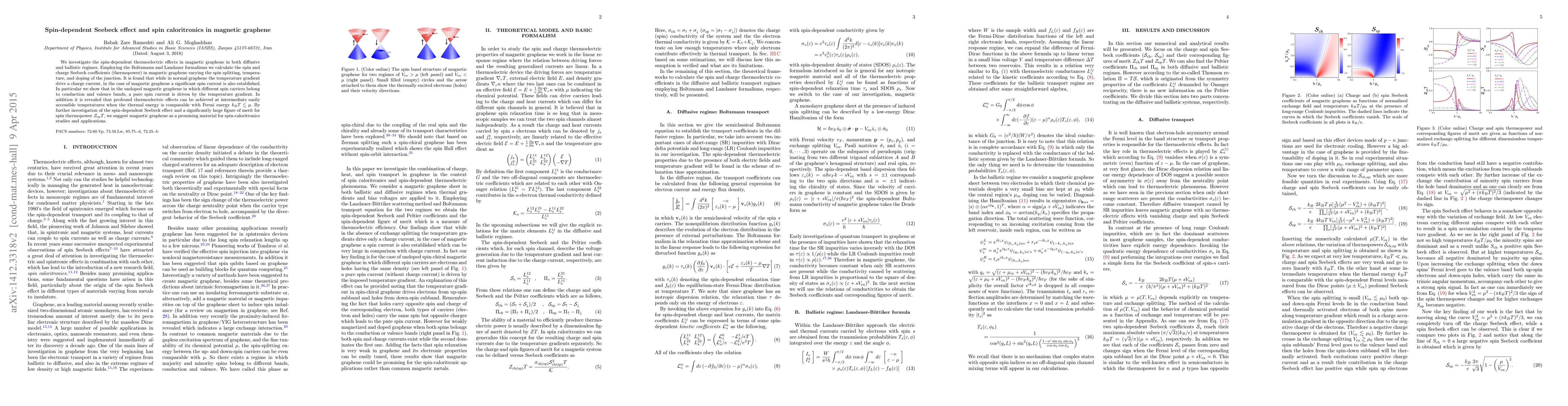 This paper investigates spin-dependent thermoelectric effects in magnetic graphene, demonstrating that a temperature gradient can drive both charge and spin currents. It finds that undoped magnetic graphene can generate a pure spin current, suggesting it as a promising material for spin-caloritronics due to its significant figure of merit for spin thermopower.