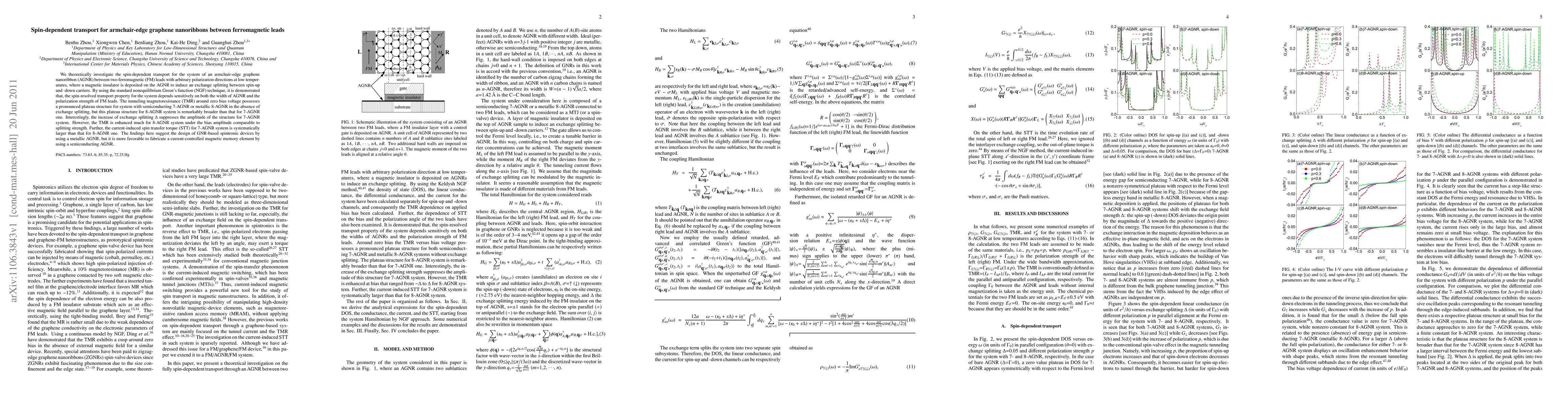 We theoretically investigate the spin-dependent transport for the system of an armchair-edge graphene nanoribbon (AGNR) between two ferromagnetic (FM) leads with arbitrary polarization directions at low temperatures, where a magnetic insulator is deposited on the AGNR to induce an exchange splitting between spin-up and -down carriers. By using the standard nonequilibrium Green's function (NGF) technique, it is demonstrated that, the spin-resolved transport property for the system depends sensitively on both the width of AGNR and the polarization strength of FM leads. The tunneling magnetoresistance (TMR) around zero bias voltage possesses a pronounced plateau structure for system with semiconducting 7-AGNR or metallic 8-AGNR in the absence of exchange splitting, but this plateau structure for 8-AGNR system is remarkably broader than that for 7-AGNR one. Interestingly, the increase of exchange splitting $\Delta$ suppresses the amplitude of the structure for 7-AGNR system. However, the TMR is enhanced much for 8-AGNR system under the bias amplitude comparable to splitting strength. Further, the current-induced spin transfer torque (STT) for 7-AGNR system is systematically larger than that for 8-AGNR one. The findings here suggest the design of GNR-based spintronic devices by using a metallic AGNR, but it is more favorable to fabricate a current-controlled magnetic memory element by using a semiconducting AGNR.