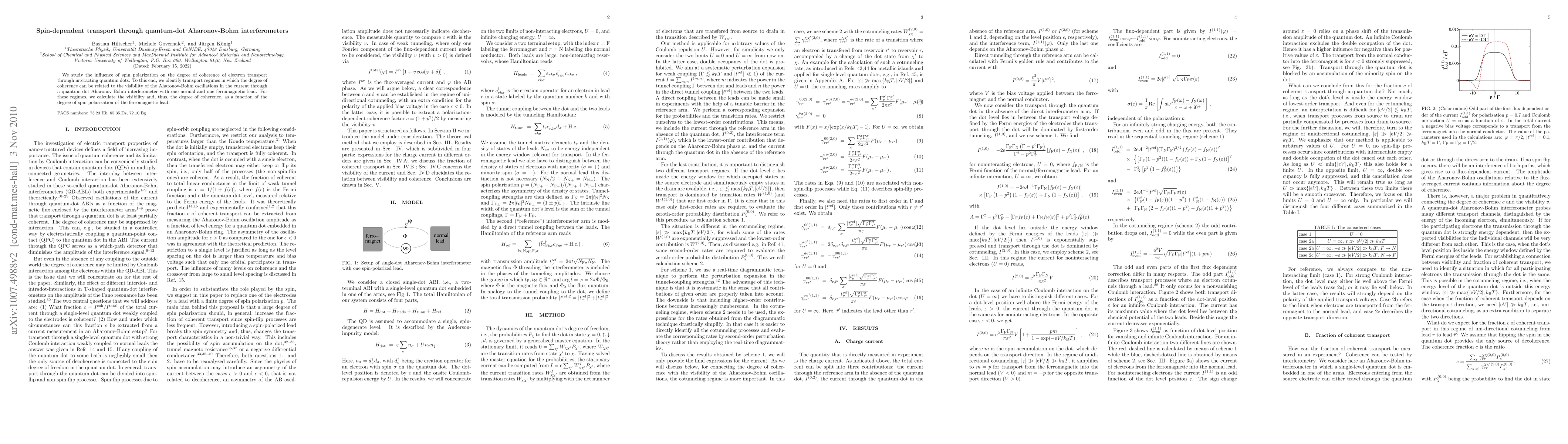 This paper investigates how spin polarization affects electron transport coherence in quantum-dot Aharonov-Bohm interferometers. It calculates the visibility of Aharonov-Bohm oscillations in current as a function of spin polarization in the ferromagnetic lead, revealing the degree of coherence in different transport regimes.