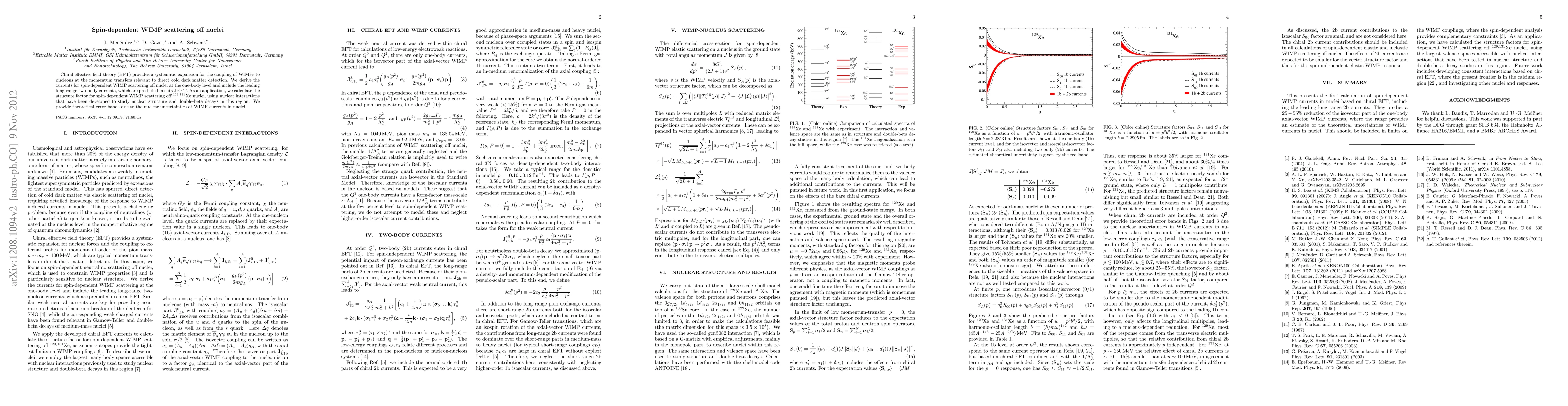This paper uses chiral effective field theory to derive currents for spin-dependent WIMP scattering off nuclei, including leading long-range two-body interactions. It calculates the structure factor for WIMP scattering off 129,131Xe nuclei, providing theoretical error bands to account for nuclear uncertainties.
