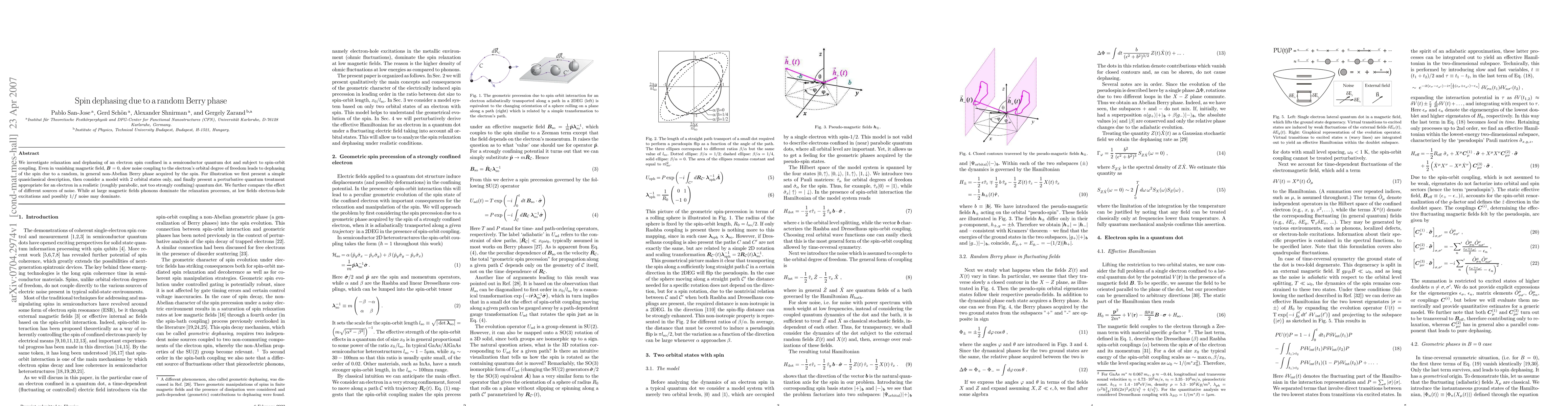 This paper explores the spin dephasing in a semiconductor quantum dot due to spin-orbit coupling and noise-induced random Berry phases, even in the absence of a magnetic field. It examines both quasiclassical and quantum models to understand the effects of different noise sources on spin relaxation and dephasing.