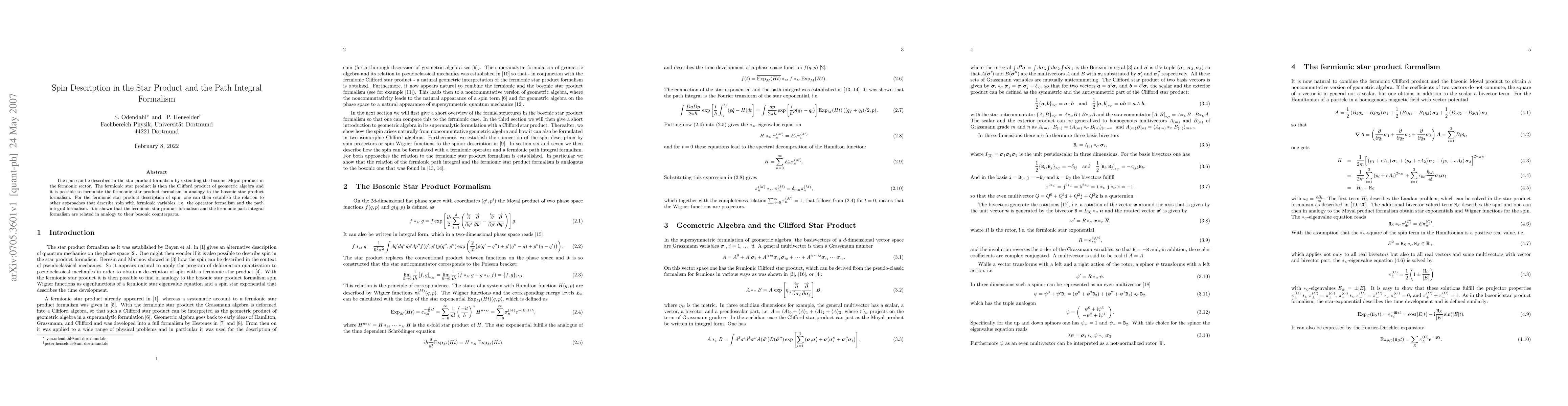 This paper extends the bosonic Moyal product to the fermionic sector to describe spin using the star product formalism, establishing a Clifford product analogy. It demonstrates the equivalence between the fermionic star product and the fermionic path integral formalism, mirroring the relationship in the bosonic case.