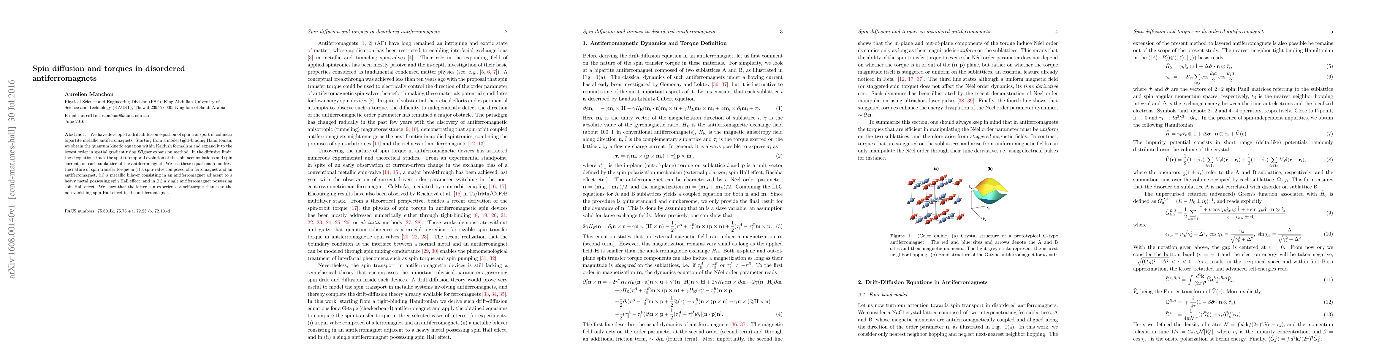 We have developed a drift-diffusion equation of spin transport in collinear bipartite metallic antiferromagnets. Starting from a model tight-binding Hamiltonian, we obtain the quantum kinetic equation within Keldysh formalism and expand it to the lowest order in spatial gradient using Wigner expansion method. In the diffusive limit, these equations track the spatio-temporal evolution of the spin accumulations and spin currents on each sublattice of the antiferromagnet. We use these equations to address the nature of spin transfer torque in (i) a spin-valve composed of a ferromagnet and an antiferromagnet, (ii) a metallic bilayer consisting in an antiferromagnet adjacent to a heavy metal possessing spin Hall effect, and in (ii) a single antiferromagnet possessing spin Hall effect. We show that the latter can experience a self-torque thanks to the non-vanishing spin Hall effect in the antiferromagnet.