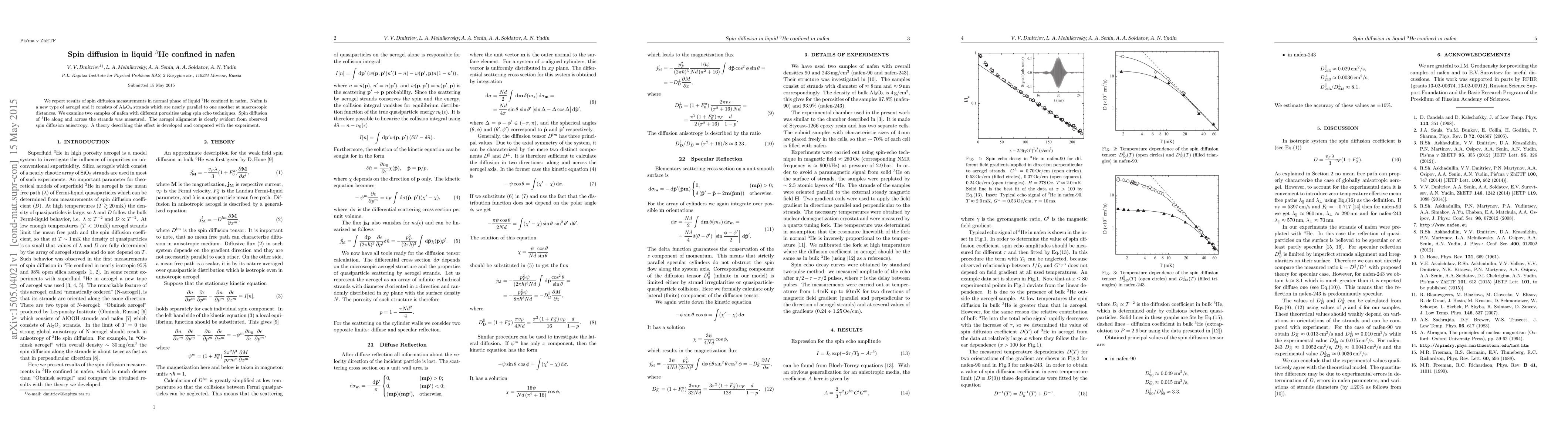 This study investigates spin diffusion in liquid 3He confined within nafen, a novel aerogel composed of nearly parallel Al2O3 strands. Using spin echo techniques, the research reveals anisotropic spin diffusion, highlighting the aerogel's alignment, and a developed theory successfully matches experimental observations.