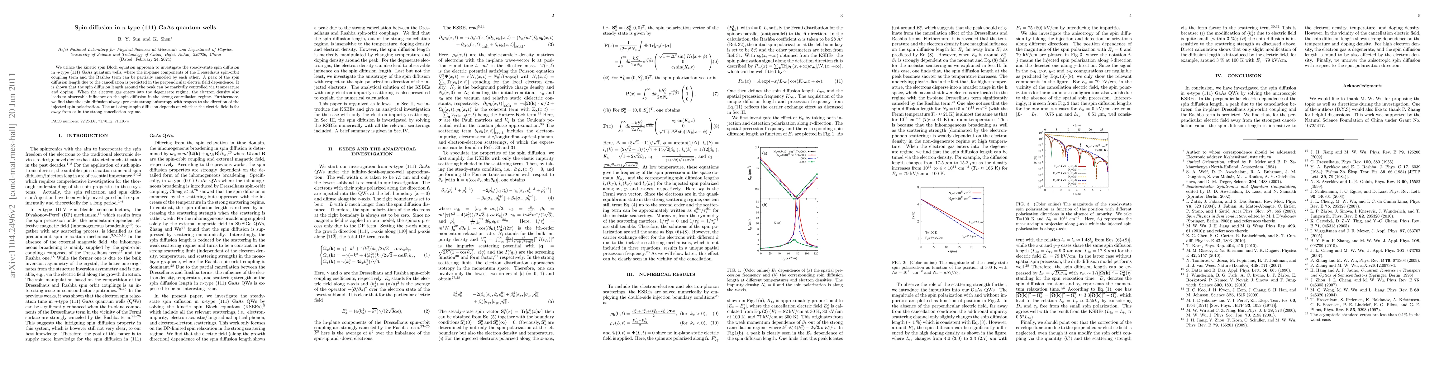This paper investigates steady-state spin diffusion in $n$-type (111) GaAs quantum wells using the kinetic spin Bloch equation approach, revealing a peak in spin diffusion length due to partial cancellation of Dresselhaus and Rashba spin-orbit terms. The study highlights controllability of spin diffusion via temperature, doping, and electron density, and shows strong anisotropy in spin diffusion dependent on electric field strength.