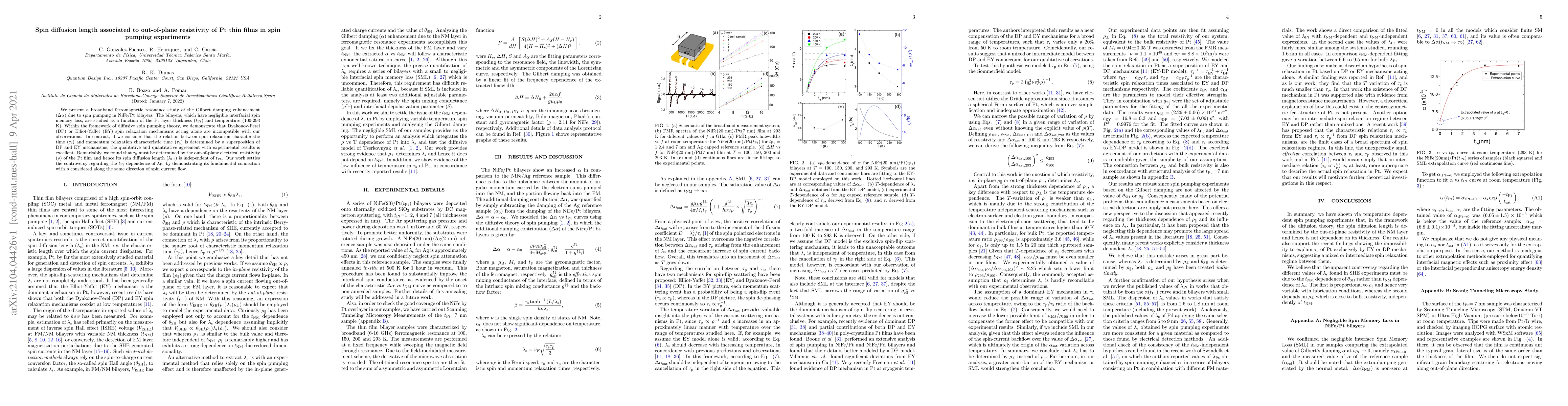 This study investigates the spin diffusion length in Pt thin films using ferromagnetic resonance and spin pumping in NiFe/Pt bilayers. The research finds that the spin diffusion length is independent of Pt layer thickness and is fundamentally linked to the out-of-plane resistivity of Pt, resolving previous debates on its dependence.