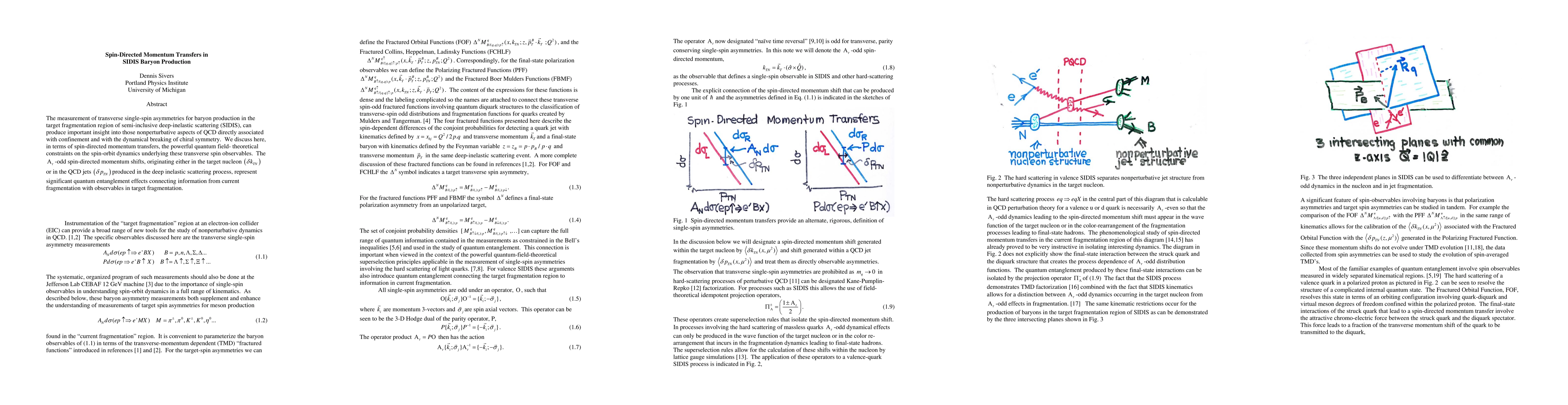 The measurement of transverse single-spin asymmetries for baryon production in the target fragmentation region of semi-inclusive deep-inelastic scattering (SIDIS), can produce important insight into those nonperturbative aspects of QCD directly associated with confinement and with the dynamical breaking of chiral symmetry. We discuss here, interns of spin-directed momentum transfers, the powerful quantum field-theoretical constraints on the spin-orbit dynamics underlying these transverse spin observables. The spin-directed momentum shifts, originating either in the target nucleon or in the QCD jets produced in the deep inelastic scattering process, represent significant quantum entanglement effects connecting information from current fragmentation with observables in target fragmentation.