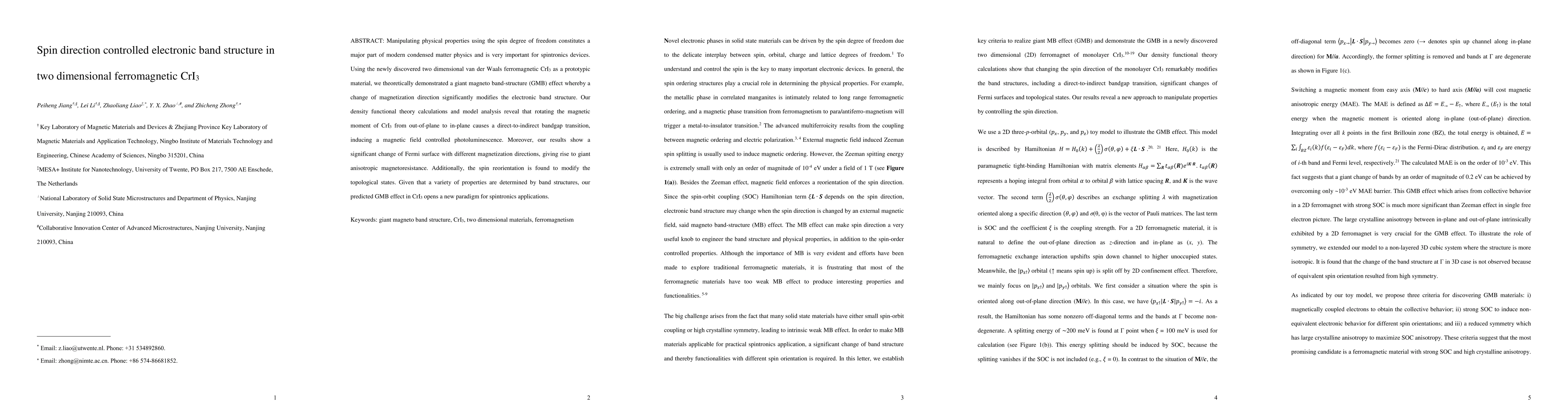This paper demonstrates a giant magneto band-structure effect in 2D ferromagnetic CrI3, showing that changing the magnetization direction significantly alters the electronic band structure, leading to a direct-to-indirect bandgap transition and giant anisotropic magnetoresistance, which could advance spintronics applications.