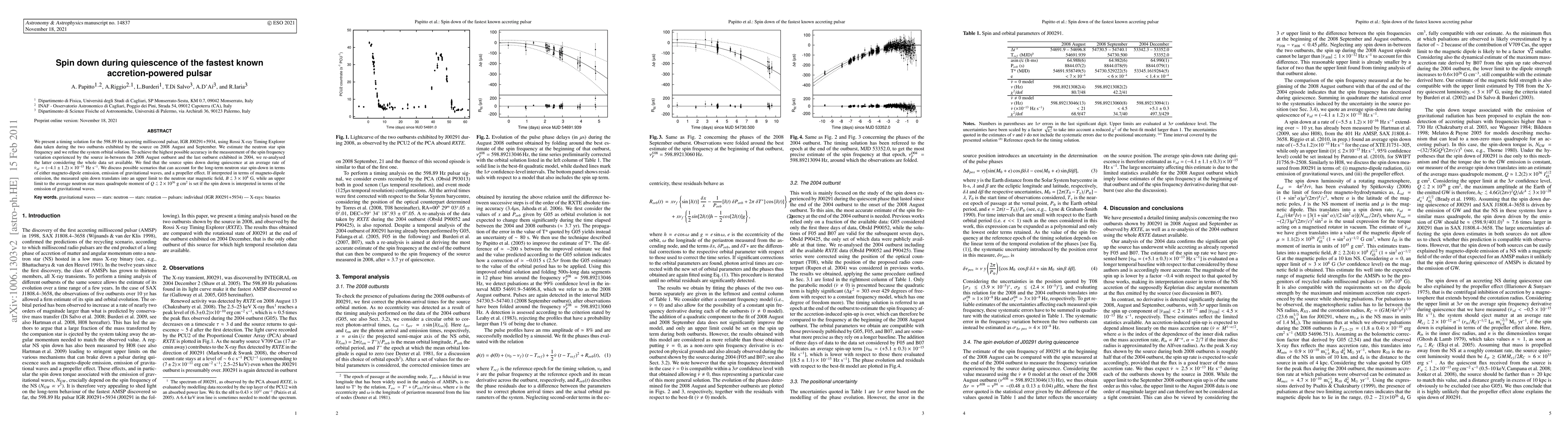 This paper presents a refined timing solution for the accreting millisecond pulsar IGR J00291+5934, revealing a spin-down rate of (-4.1 +/- 1.2)E-15 Hz/s during quiescence. The study discusses potential mechanisms for the spin-down, including magneto-dipole emission and gravitational wave emission, providing upper limits for the neutron star's magnetic field and mass quadrupole moment.