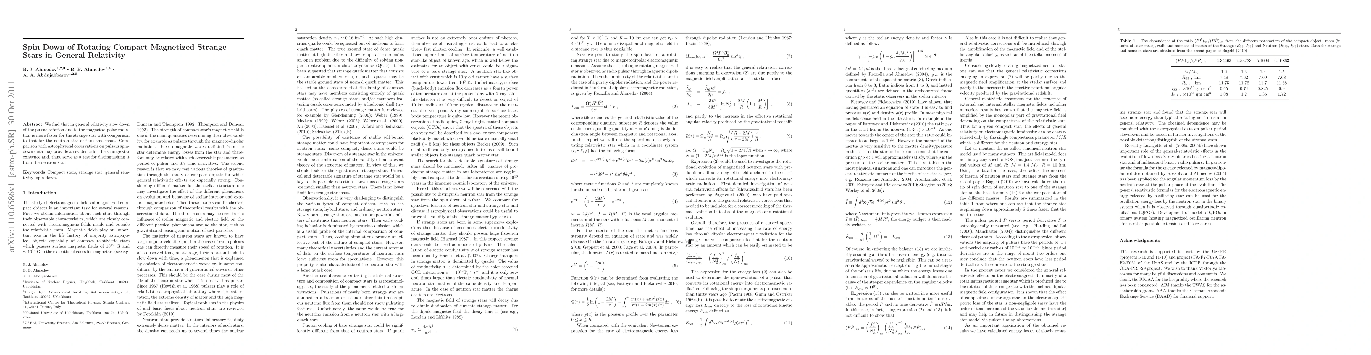 This paper investigates the spin-down rate of rotating magnetized strange stars in general relativity, finding that they decelerate faster than neutron stars of the same mass due to magnetodipolar radiation. This difference could potentially be used to distinguish strange stars from neutron stars based on pulsar spin-down observations.