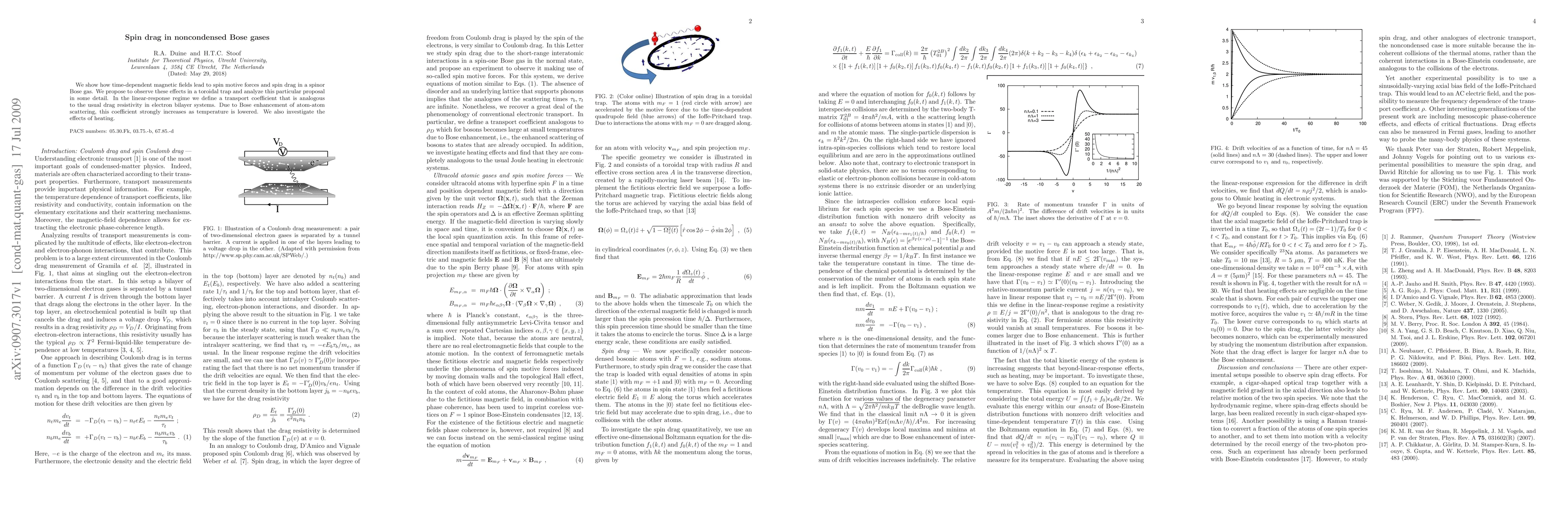 The paper introduces a theoretical framework for analyzing spin drag in noncondensed Bose gases, defining a transport coefficient that captures the essence of spin motive forces and their impact on spin transport.