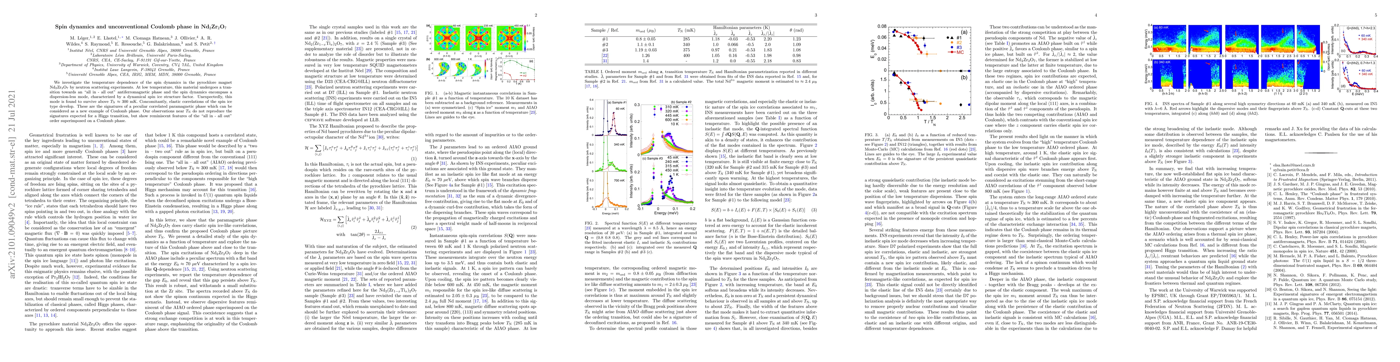 We investigate the temperature dependence of the spin dynamics in the pyrochlore magnet Nd$_2$Zr$_2$O$_7$ by neutron scattering experiments. At low temperature, this material undergoes a transition towards an "all in - all out" antiferromagnetic phase and the spin dynamics encompass a dispersion-less mode, characterized by a dynamical spin ice structure factor. Unexpectedly, this mode is found to survive above $T_{\rm N} \approx 300$ mK. Concomitantly, elastic correlations of the spin ice type develop. These are the signatures of a peculiar correlated paramagnetic phase which can be considered as a new example of Coulomb phase. Our observations near $T_{\rm N}$ do not reproduce the signatures expected for a Higgs transition, but show reminiscent features of the "all in - all out" order superimposed on a Coulomb phase.
