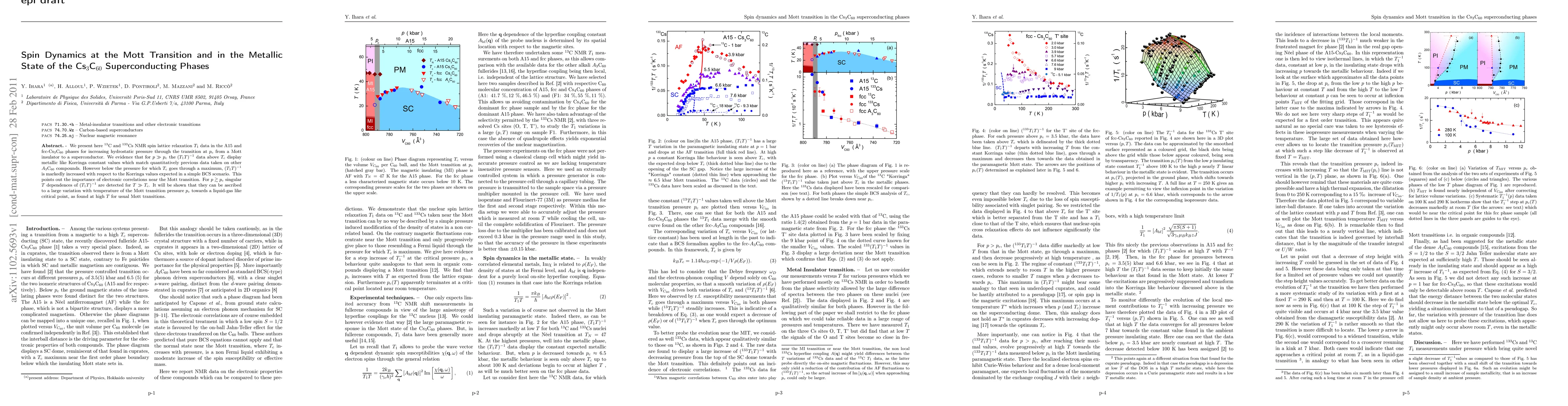 We present here ^{13}C and ^{133}Cs NMR spin lattice relaxation T_{1} data in the A15 and fcc-Cs_{3}C_{60} phases for increasing hydrostatic pressure through the transition at p_{c} from a Mott insulator to a superconductor. We evidence that for p>> p_{c} the (T_{1}T)^{-1} data above T_{c} display metallic like Korringa constant values which match quantitatively previous data taken on other A_{3}C_{60} compounds. However below the pressure for which T_{c} goes through a maximum, (T_{1}T)^{-1} is markedly increased with respect to the Korringa values expected in a simple BCS scenario. This points out the importance of electronic correlations near the Mott transition. For p > p_{c} singular T dependences of (T_{1}T)^{-1} are detected for T >> T_{c}. It will be shown that they can be ascribed to a large variation with temperature of the Mott transition pressure p_{c} towards a liquid-gas like critical point, as found at high T for usual Mott transitions.