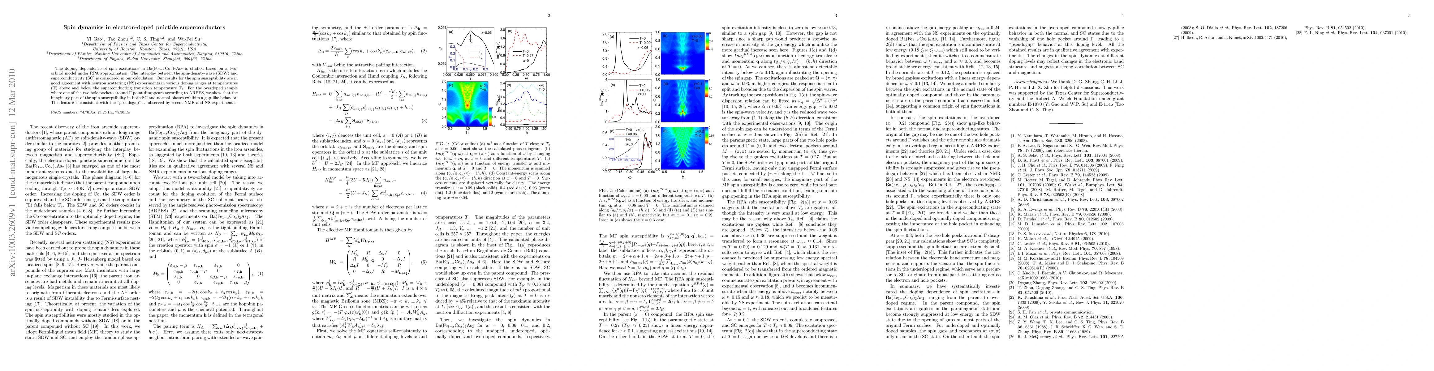 The doping dependence of spin excitations in Ba(Fe$_{1-x}$Co$_{x}$)$_{2}$As$_{2}$ is studied based on a two-orbital model under RPA approximation. The interplay between the spin-density-wave (SDW) and superconductivity (SC) is considered in our calculation. Our results for the spin susceptibility are in good agreement with neutron scattering (NS) experiments in various doping ranges at temperatures (T) above and below the superconducting transition temperature T$_{c}$. For the overdoped sample where one of the two hole pockets around $\Gamma$ point disappears according to ARPES, we show that the imaginary part of the spin susceptibility in both SC and normal phases exhibits a gap-like behavior. This feature is consistent with the "pseudogap" as observed by recent NMR and NS experiments.