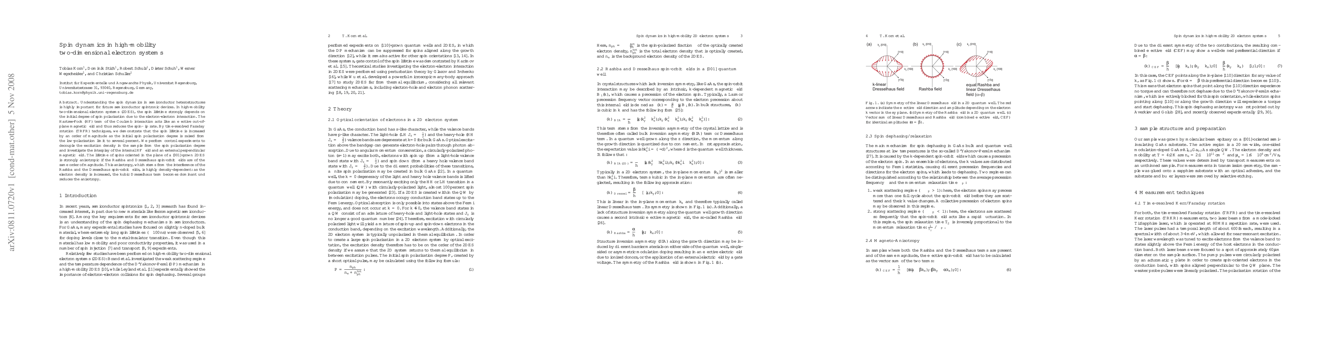 Understanding the spin dynamics in semiconductor heterostructures is highly important for future semiconductor spintronic devices. In high-mobility two-dimensional electron systems (2DES), the spin lifetime strongly depends on the initial degree of spin polarization due to the electron-electron interaction. The Hartree-Fock (HF) term of the Coulomb interaction acts like an effective out-of-plane magnetic field and thus reduces the spin-flip rate. By time-resolved Faraday rotation (TRFR) techniques, we demonstrate that the spin lifetime is increased by an order of magnitude as the initial spin polarization degree is raised from the low-polarization limit to several percent. We perform control experiments to decouple the excitation density in the sample from the spin polarization degree and investigate the interplay of the internal HF field and an external perpendicular magnetic field. The lifetime of spins oriented in the plane of a [001]-grown 2DES is strongly anisotropic if the Rashba and Dresselhaus spin-orbit fields are of the same order of magnitude. This anisotropy, which stems from the interference of the Rashba and the Dresselhaus spin-orbit fields, is highly density-dependent: as the electron density is increased, the kubic Dresselhaus term becomes dominant and reduces the anisotropy.