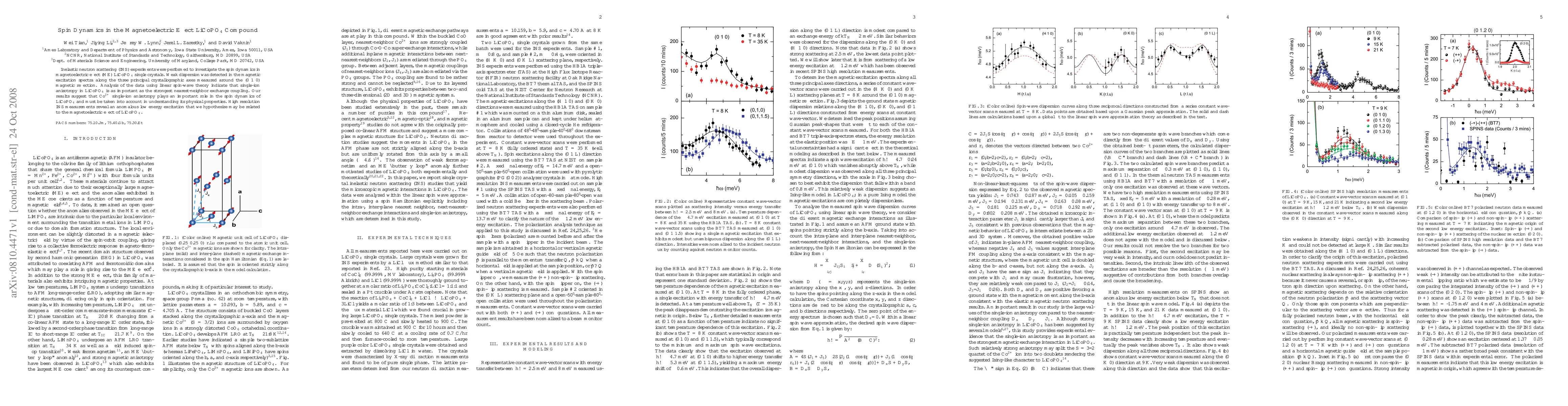 Inelastic neutron scattering (INS) experiments were performed to investigate the spin dynamics in magnetoelectric effect (ME) LiCoPO$_4$ single crystals. Weak dispersion was detected in the magnetic excitation spectra along the three principal crystallographic axes measured around the (0 1 0) magnetic reflection. Analysis of the data using linear spin-wave theory indicate that single-ion anisotropy in LiCoPO$_4$ is as important as the strongest nearest-neighbor exchange coupling. Our results suggest that Co$^{2+}$ single-ion anisotropy plays an important role in the spin dynamics of LiCoPO$_4$ and must be taken into account in understanding its physical properties. High resolution INS measurements reveal an anomalous low energy excitation that we hypothesize may be related to the magnetoelectric effect of LiCoPO$_4$.