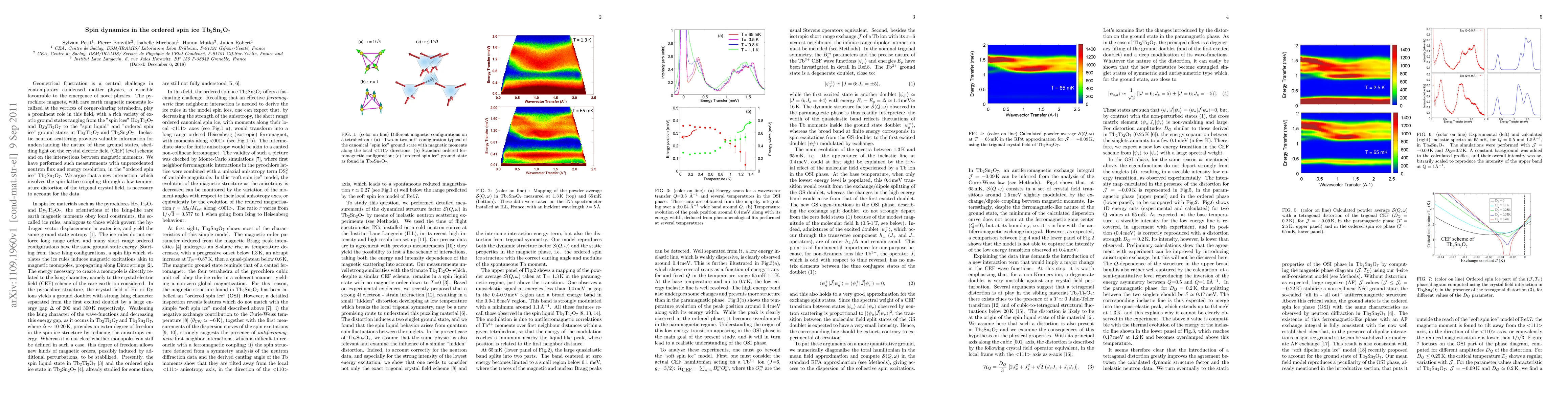 Geometrical frustration is a central challenge in contemporary condensed matter physics, a crucible favourable to the emergence of novel physics. The pyrochlore magnets, with rare earth magnetic moments localized at the vertices of corner-sharing tetrahedra, play a prominent role in this field, with a rich variety of exotic ground states ranging from the "spin ices" \hoti\ and \dyti\ to the "spin liquid" and "ordered spin ice" ground states in \tbti\ and \tbsn. Inelastic neutron scattering provides valuable information for understanding the nature of these ground states, shedding light on the crystal electric field (CEF) level scheme and on the interactions between magnetic moments. We have performed such measurements with unprecedented neutron flux and energy resolution, in the "ordered spin ice" \tbsn. We argue that a new interaction, which involves the spin lattice coupling through a low temperature distortion of the trigonal crystal field, is necessary to account for the data.