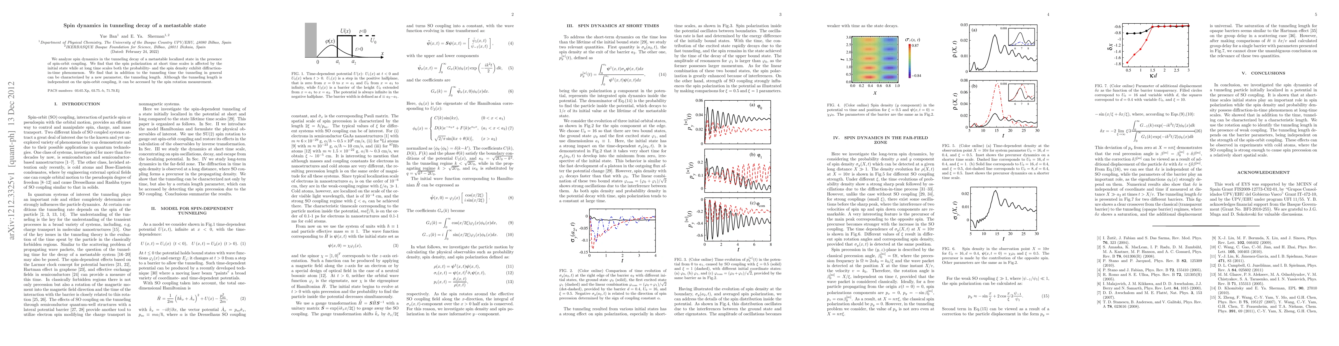 This paper investigates spin dynamics in the tunneling decay of a metastable state, revealing that short-time spin polarization depends on the initial state, while long-time scales show diffraction-in-time effects. A new parameter, the tunneling length, characterizes tunneling, independent of spin-orbit coupling but measurable via spin rotation.
