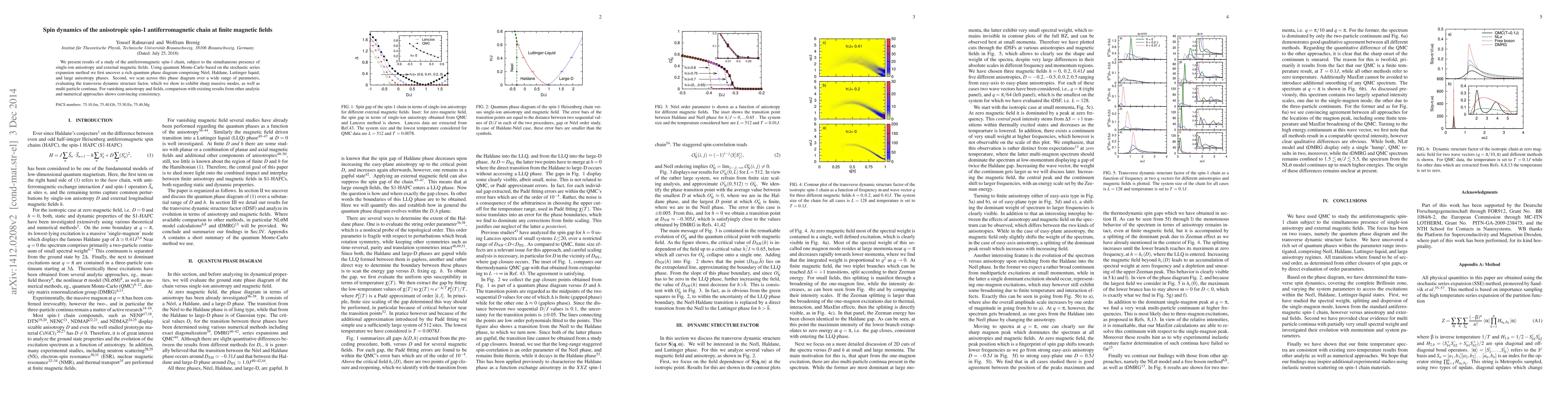 This study explores the spin dynamics of a spin-1 antiferromagnetic chain under single-ion anisotropy and magnetic fields, revealing a complex quantum phase diagram via quantum Monte-Carlo simulations. The research identifies distinct phases and analyzes the transverse dynamic structure factor, highlighting sharp massive modes and multi-particle continua.