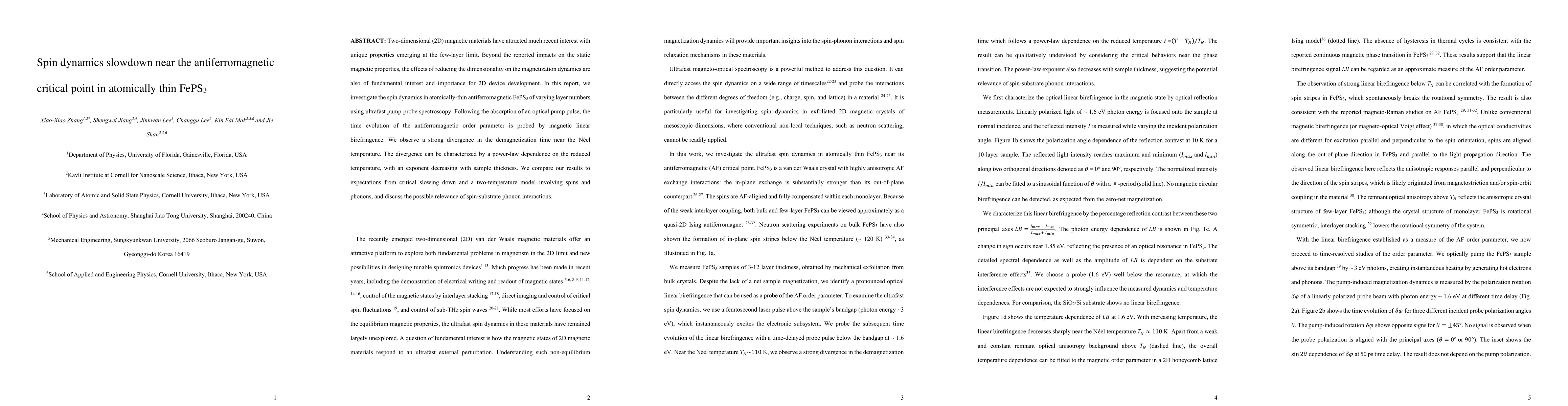 Researchers studied the spin dynamics of atomically thin FePS3 at different temperatures, finding a significant slowdown near its antiferromagnetic critical point. This slowdown is characterized by a power-law dependence on temperature, with implications for 2D device development.