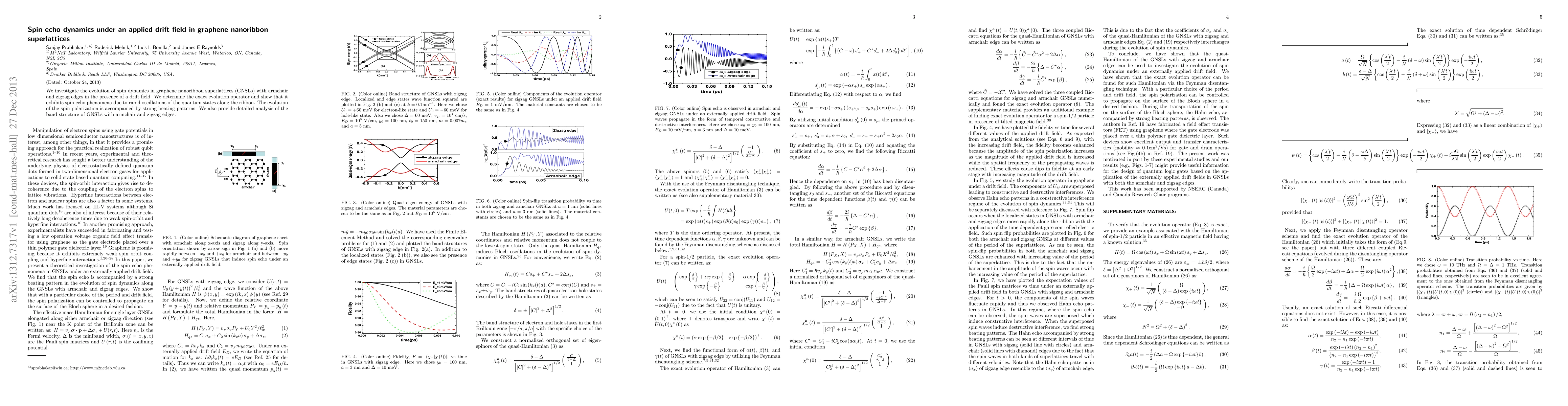 This paper examines spin dynamics in graphene nanoribbon superlattices under a drift field, revealing spin echo phenomena and strong beating patterns due to rapid quantum state oscillations. It also analyzes the band structure differences between armchair and zigzag edge GNSLs.