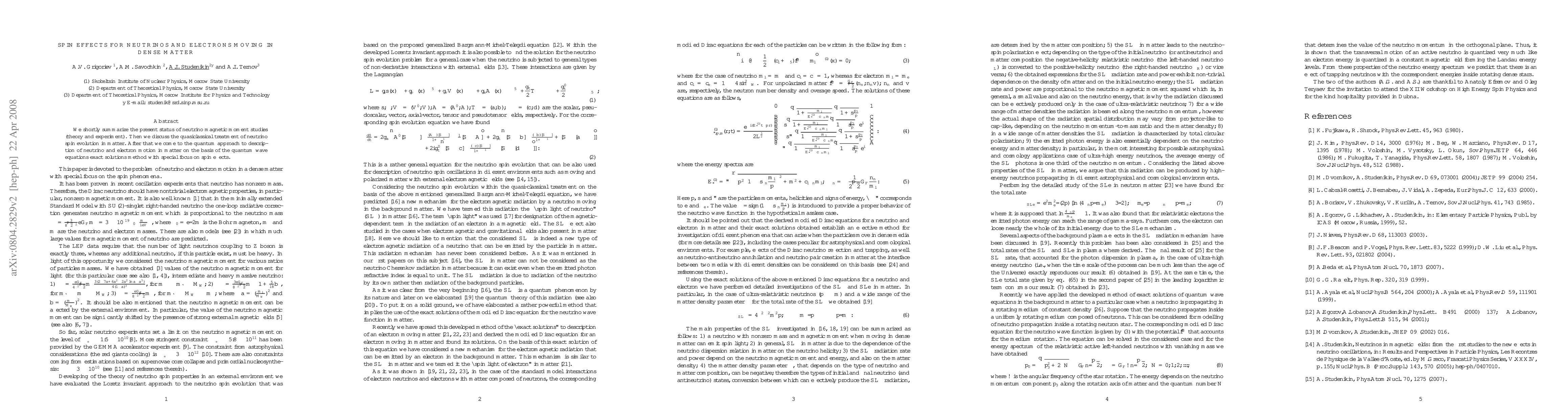 We shortly summarize the present status of neutrino magnetic moment studies (theory and experiment). Then we discuss the quasiclassical treatment of neutrino spin evolution in matter. After that we come to the quantum approach to description of neutrino and electron motion in matter on the basis of the quantum wave equations exact solutions method with special focus on spin effects.