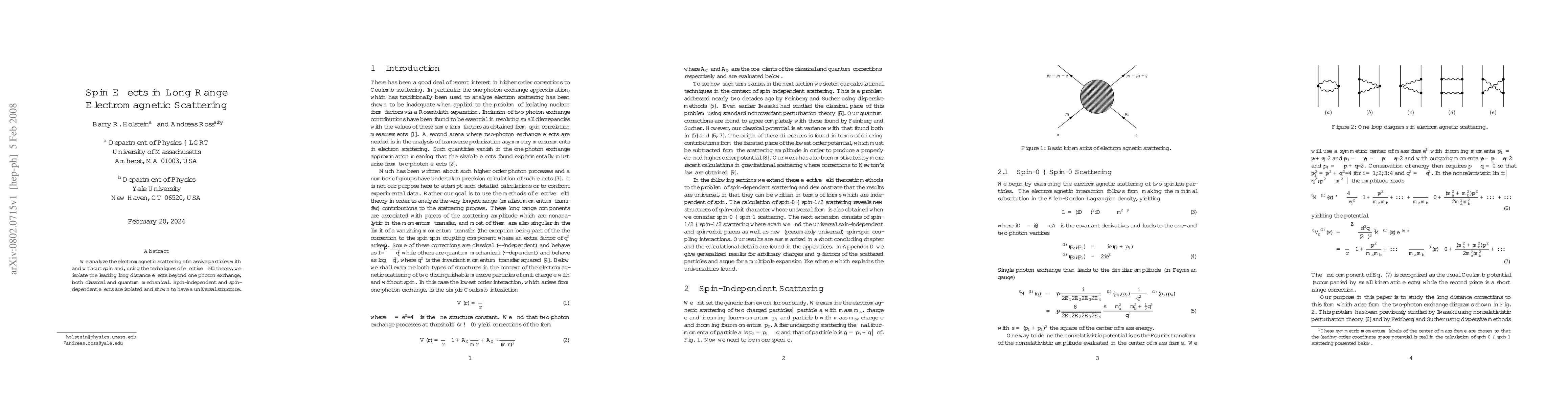 Researchers analyzed electromagnetic scattering with massive particles, revealing universal structures for both spin-independent and spin-dependent effects beyond one photon exchange.