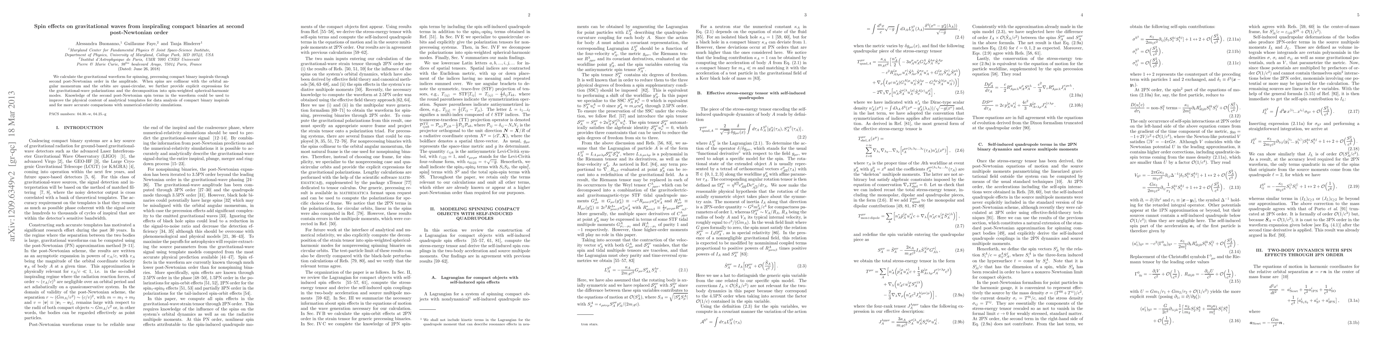 This paper calculates the gravitational waveform for spinning, precessing compact binary inspirals up to second post-Newtonian order, providing explicit expressions for gravitational-wave polarizations and decomposition into spin-weighted spherical harmonics when spins are aligned with the orbital angular momentum. This enhanced waveform knowledge can improve analytical templates for data analysis and comparisons with numerical simulations.