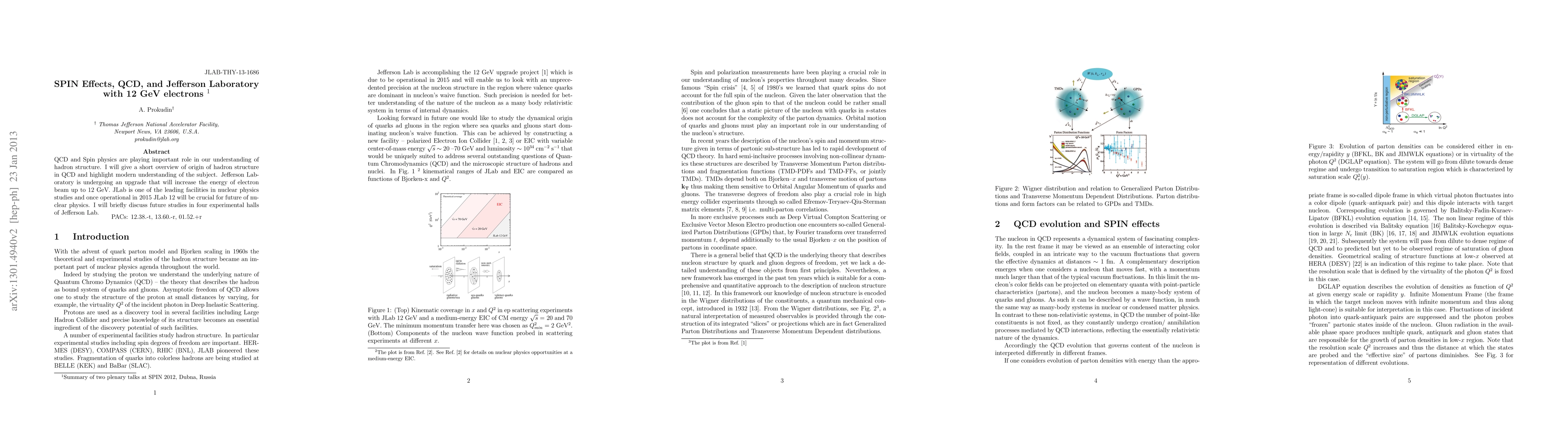 QCD and Spin physics are playing important role in our understanding of hadron structure. I will give a short overview of origin of hadron structure in QCD and highlight modern understanding of the subject. Jefferson Laboratory is undergoing an upgrade that will increase the energy of electron beam up to 12 GeV. JLab is one of the leading facilities in nuclear physics studies and once operational in 2015 JLab 12 will be crucial for future of nuclear physics. I will briefly discuss future studies in four experimental halls of Jefferson Lab.