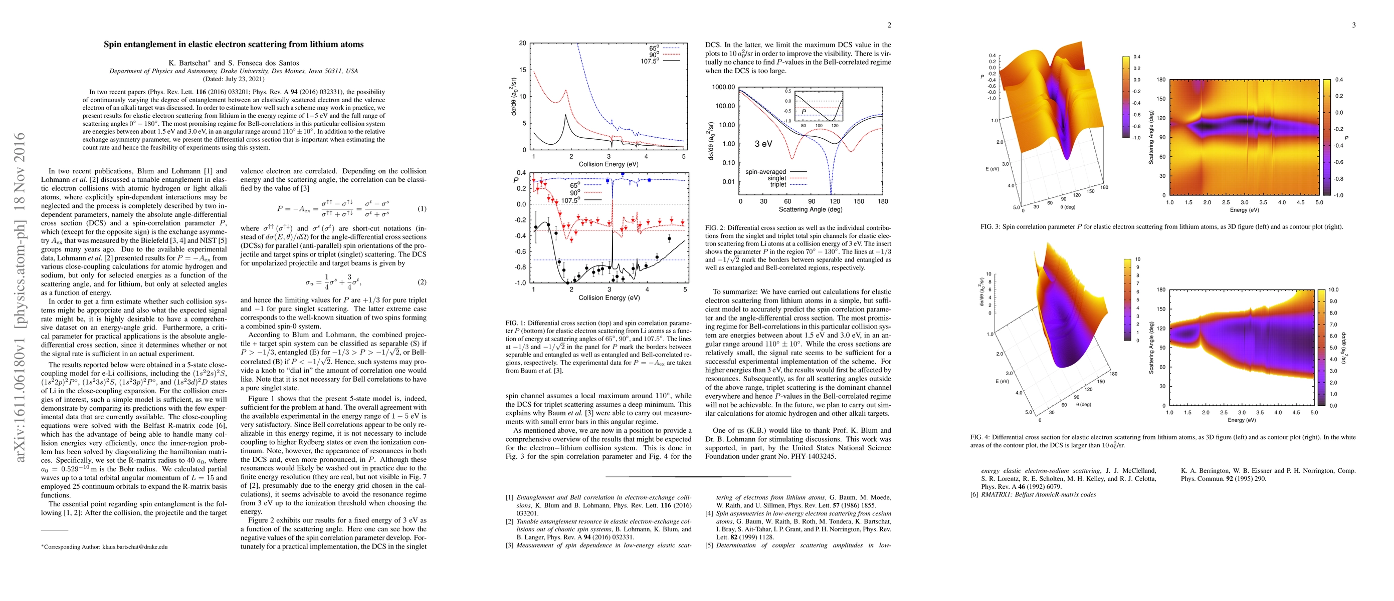 In two recent papers (Phys. Rev. Lett. {\bf 116} (2016) 033201; Phys. Rev. A {\bf 94} (2016) 032331), the possibility of continuously varying the degree of entanglement between an elastically scattered electron and the valence electron of an alkali target was discussed. In order to estimate how well such a scheme may work in practice, we present results for elastic electron scattering from lithium in the energy regime of 1$-$5~eV and the full range of scattering angles $0^\circ - 180^\circ$. The most promising regime for Bell-correlations in this particular collision system are energies between about 1.5 eV and 3.0 eV, in an angular range around $110^\circ \pm 10^\circ$. In addition to the relative exchange asymmetry parameter, we present the differential cross section that is important when estimating the count rate and hence the feasibility of experiments using this system.