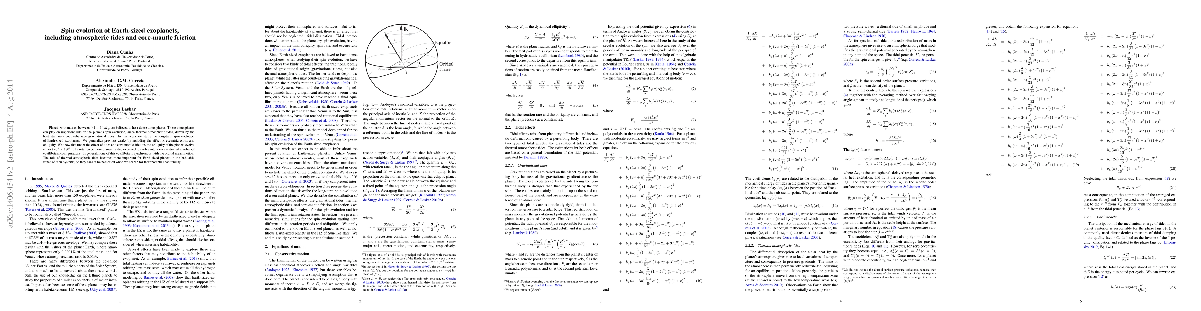 This paper investigates the long-term spin evolution of Earth-sized exoplanets, emphasizing the influence of thermal atmospheric tides and core-mantle friction. It finds that these factors lead to the obliquity evolving to 0 or 180 degrees, and the rotation settling into a limited number of non-synchronous equilibrium configurations.