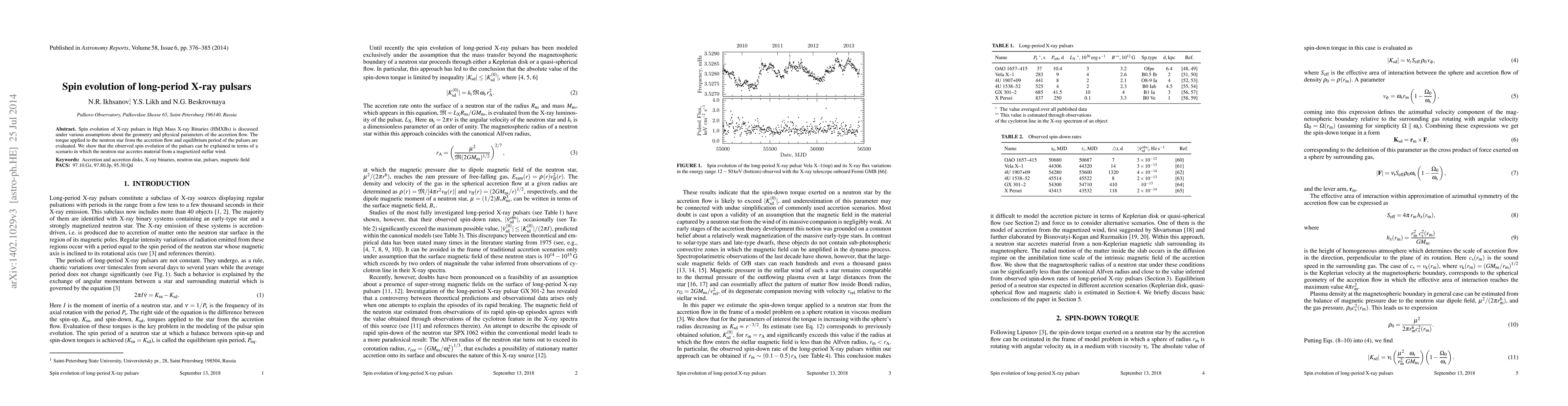 This paper investigates the spin evolution of long-period X-ray pulsars in High Mass X-ray Binaries, evaluating the torque from accretion flows and concluding that the observed spin changes align with neutron stars accreting from magnetized stellar winds.