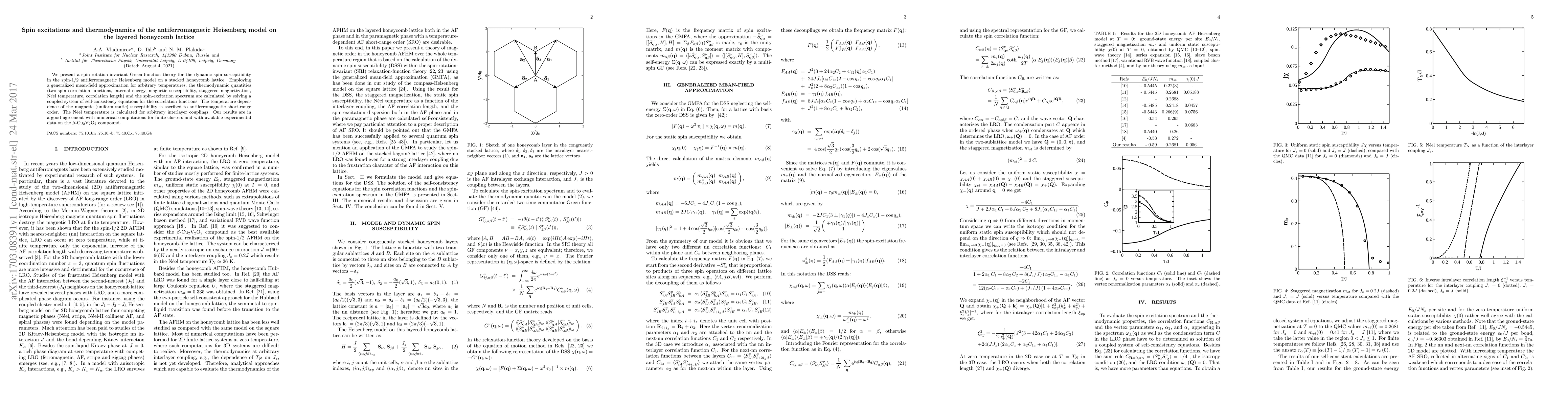 This paper develops a Green-function theory to study the dynamic spin susceptibility in the spin-1/2 antiferromagnetic Heisenberg model on a layered honeycomb lattice, calculating thermodynamic quantities and spin excitations using a generalized mean-field approximation. The Néel temperature and magnetic susceptibility are determined, showing good agreement with numerical and experimental data.